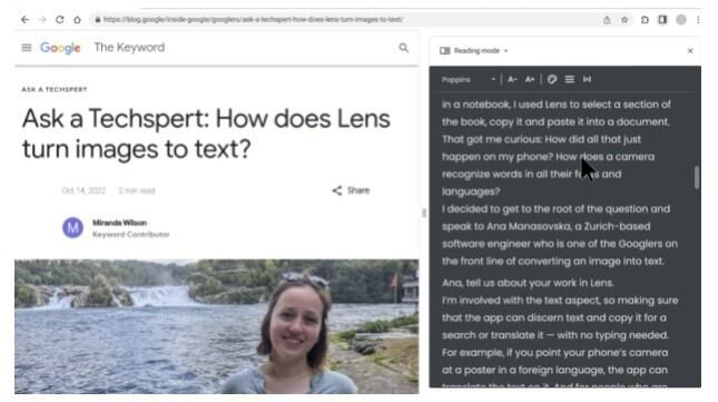El modo lectura ofrece una vista sin distracciones de una página web, que retira elementos como los vídeos, las imágenes o los anuncios, para que el usuario pueda centrarse en el texto.