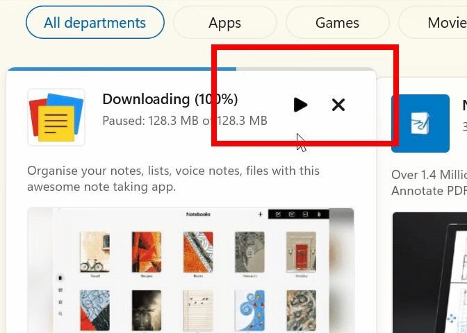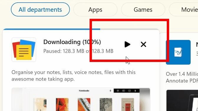 Una vez se haya pulsado dicho botón se activará la instalación automáticamente. Además, durante el proceso de descarga de la 'app' en esta misma ventana también aparece la opción de cancelar la descarga o de pausarla.