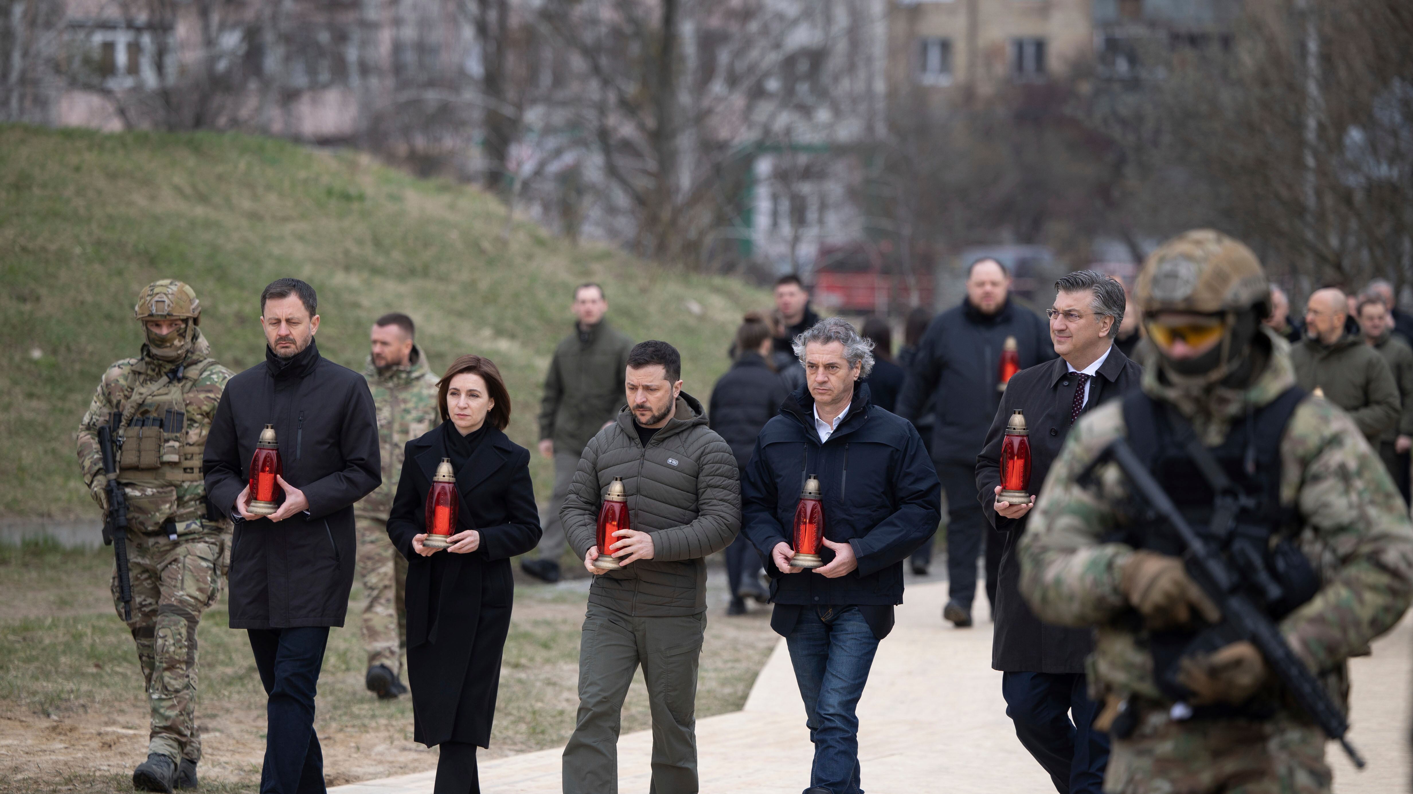 En la conmemoración oficial en Bucha participaron la presidenta de Moldavia y los primeros ministros de Croacia, Eslovaquia y Eslovenia.
