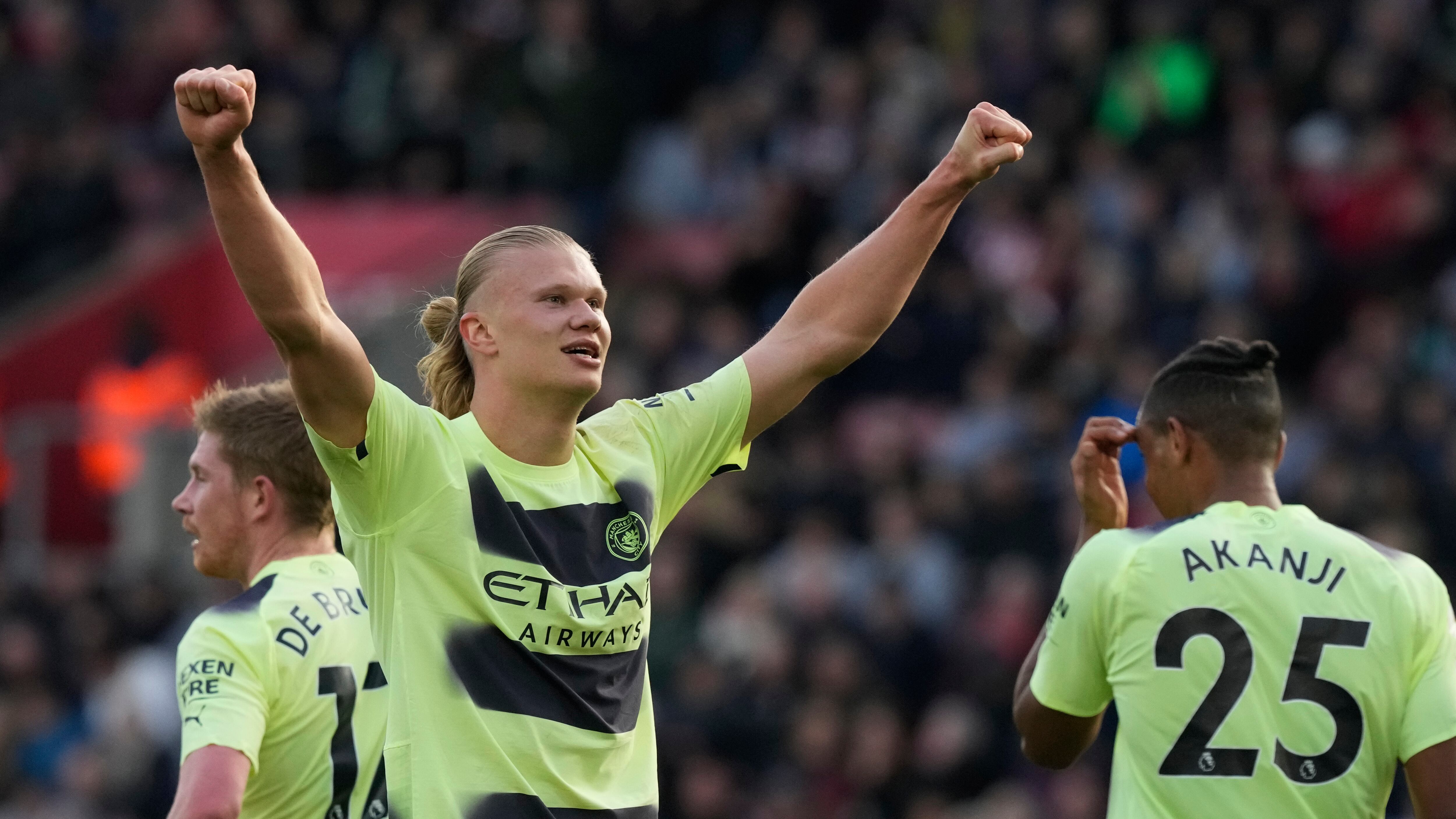 Haaland llevó a 30 su total de goles en la Liga Premier con el City con un doblete en la victoria 4-1 ante el Southampton el sábado para mantener la presión sobre el Arsenal en la pelea por el título.