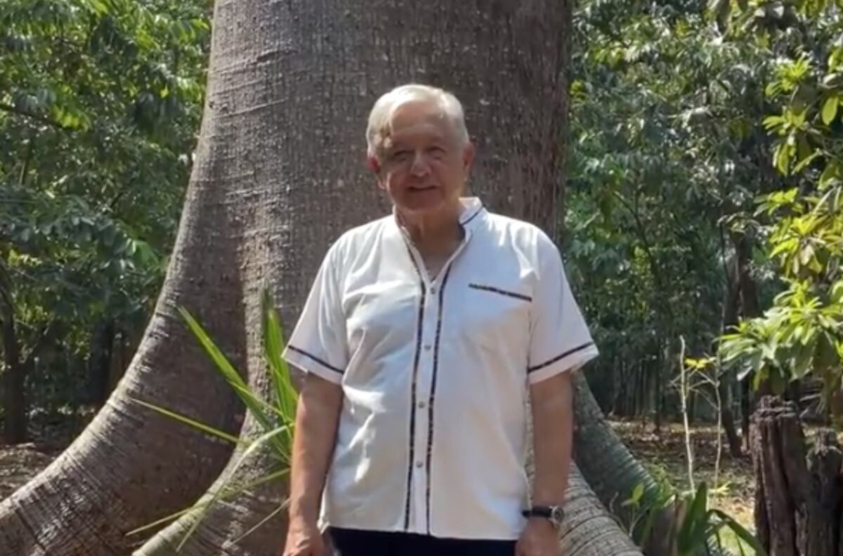 “Ya vamos de regreso a la Ciudad de México, estuvimos en Palenque el fin de semana y ya nos estamos despidiendo de las ceibas, de la guanábana, del mamey, del palo de tinte, de los pájaros, de los saraguatos, de las guacamayas”, afirmó, vestido con guayabera blanca y pantalón negro.