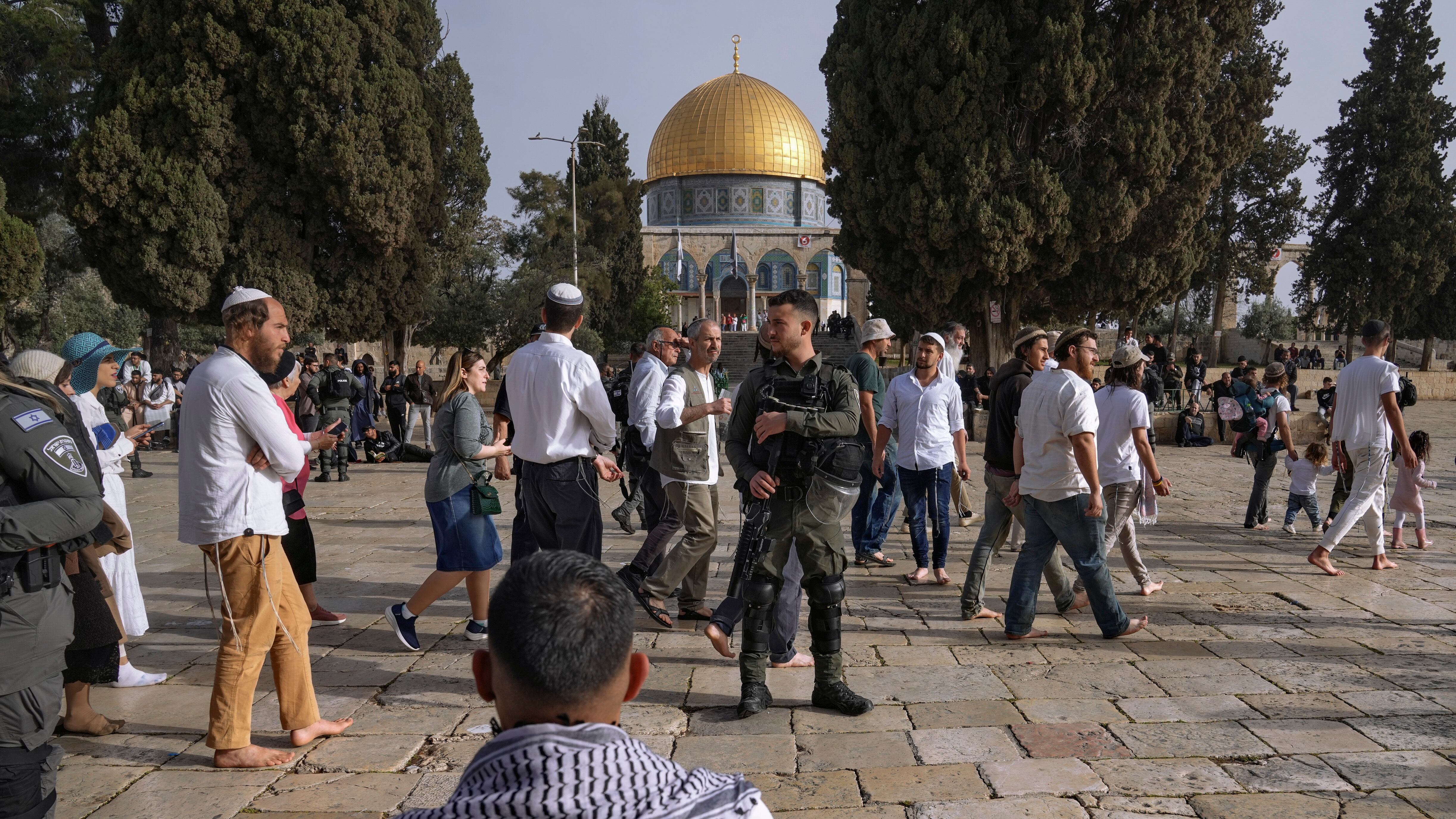 Miles de fieles judíos se reunieron en el Muro de los Lamentos, el lugar más sagrado donde pueden orar los judíos, para un servicio masivo de bendiciones por el feriado de la Pascua judía. En el complejo de la Explanada de las Mezquitas, un recinto amurallado sobre el Muro de los Lamentos, cientos de palestinos participaban en las oraciones dentro del mes sagrado islámico del Ramadán.