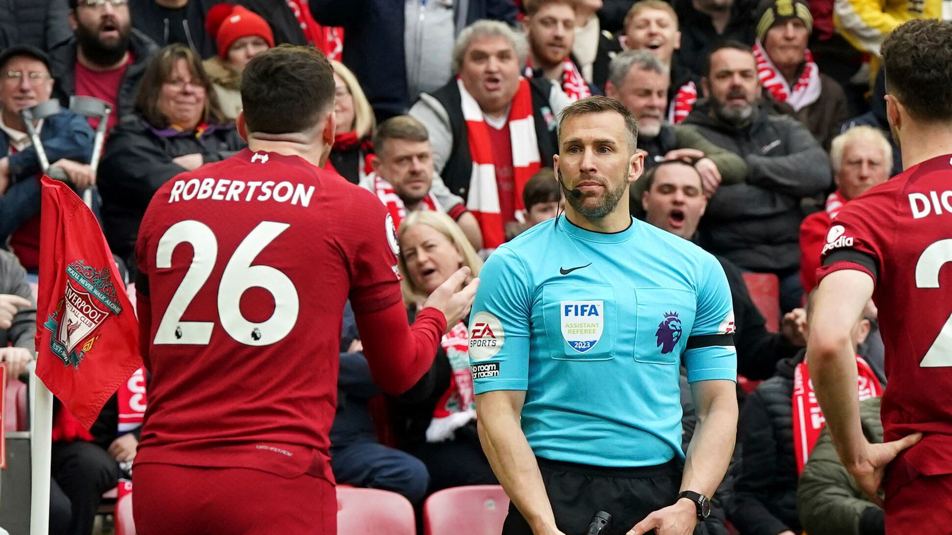 Hatzidakis le habría propinado un codazo a Robertson durante el empate 2-2 entre Liverpool y Arsenal en el estadio Anfield el domingo.