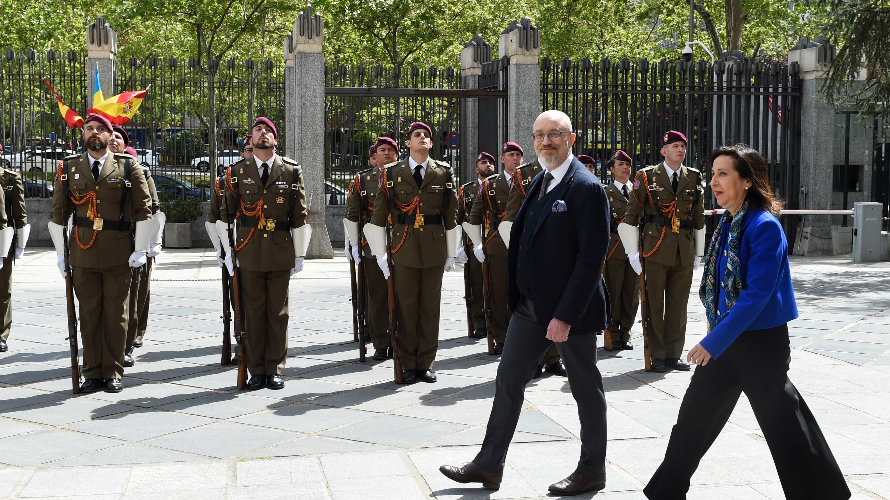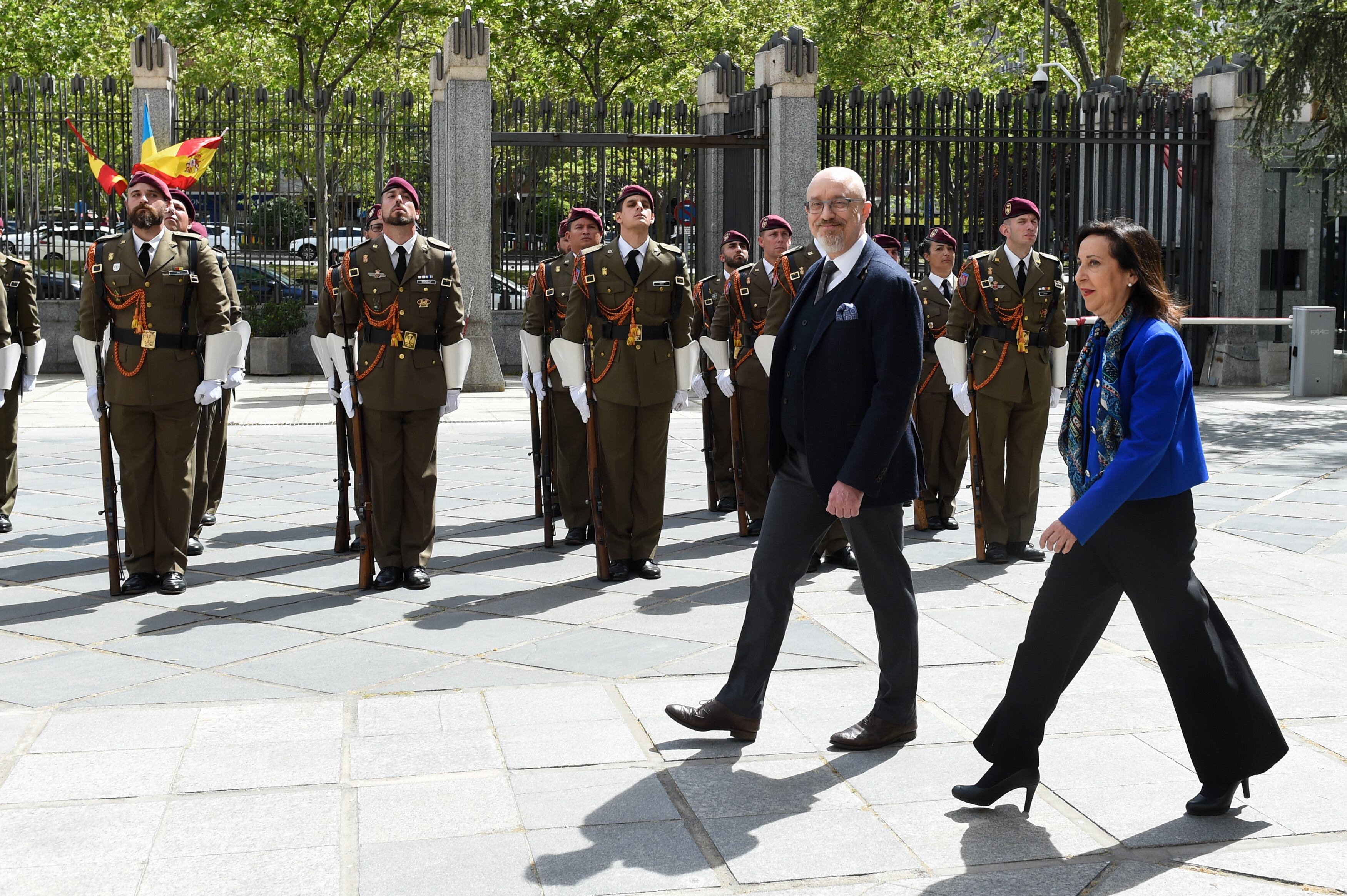Reznikov ha visitado este miércoles Madrid por primera vez desde el inicio de la guerra en febrero del pasado año y ha sido recibido con honores en el Ministerio de Defensa por la ministra Robles, con quien después ha visitado a los heridos ucranianos que están siendo tratados en el hospital Gómez Ulla de Madrid.