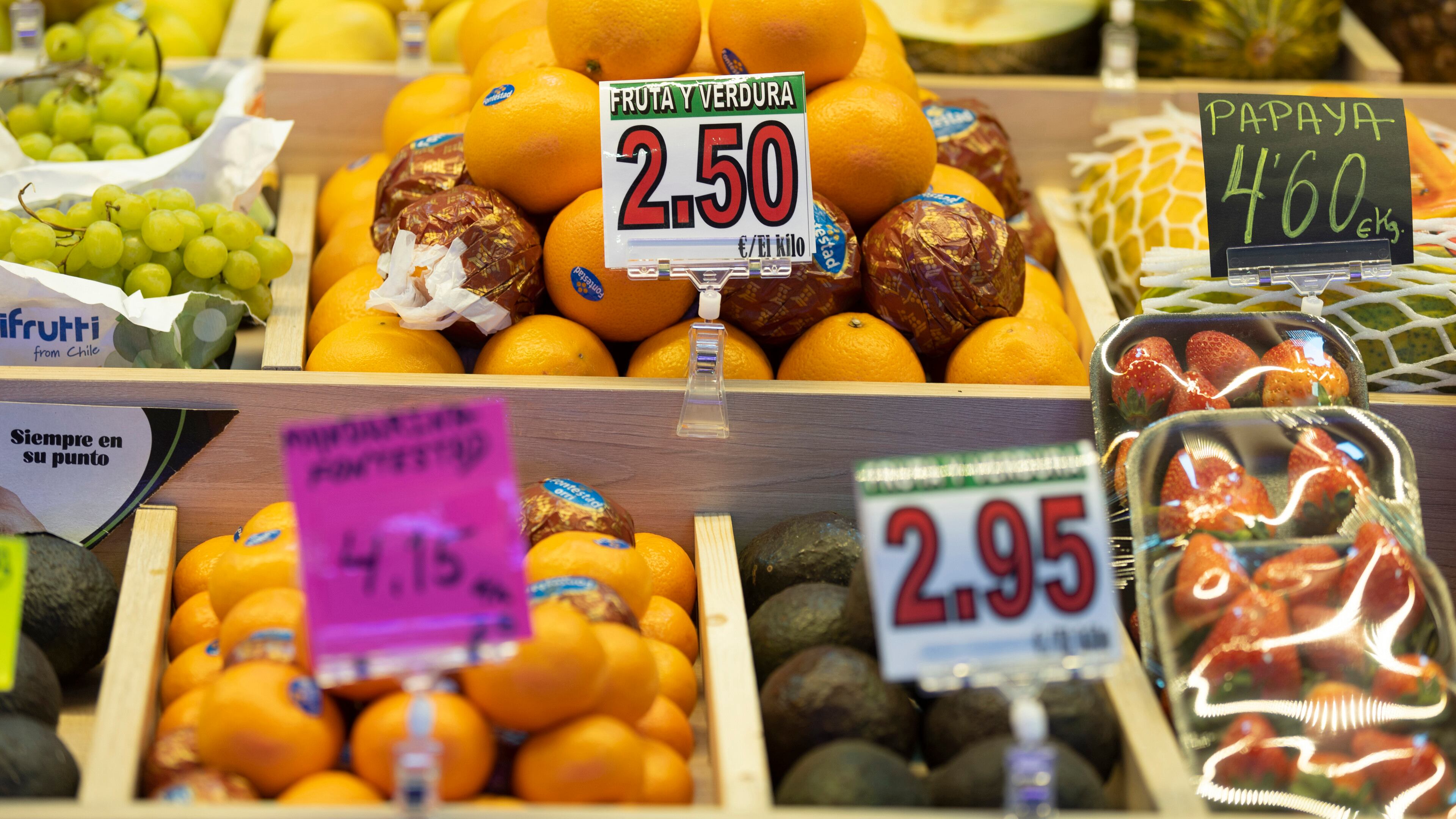 Diferentes frutas en una frutería en un puesto de un mercado, a 15 de marzo de 2023, en Madrid (España). El Índice de Precios de Consumo (IPC) ha subido un 0,9% en febrero en relación al mes anterior y elevó una décima su tasa interanual, hasta el Eduardo Parra - Europa Press