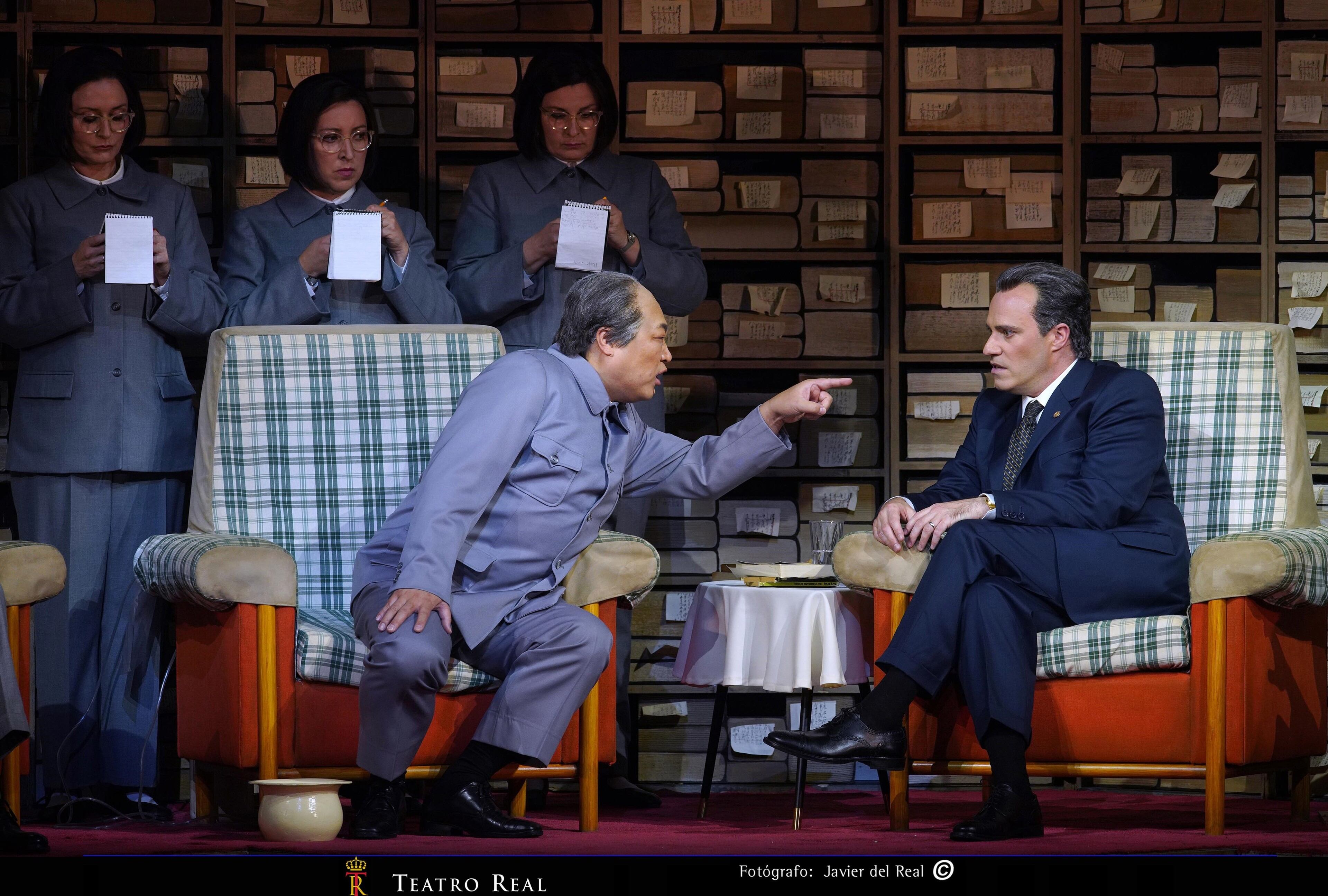 Los personajes de 'Nixon en China' también cuentan con un toque excéntrico, como las secretarias de Mao Zedong, la cuales repiten todo lo que dice su líder en un tono más bajo e incluso se adelantan a lo que pronuncia, con el objetivo de que el líder no se salga del discurso oficial.