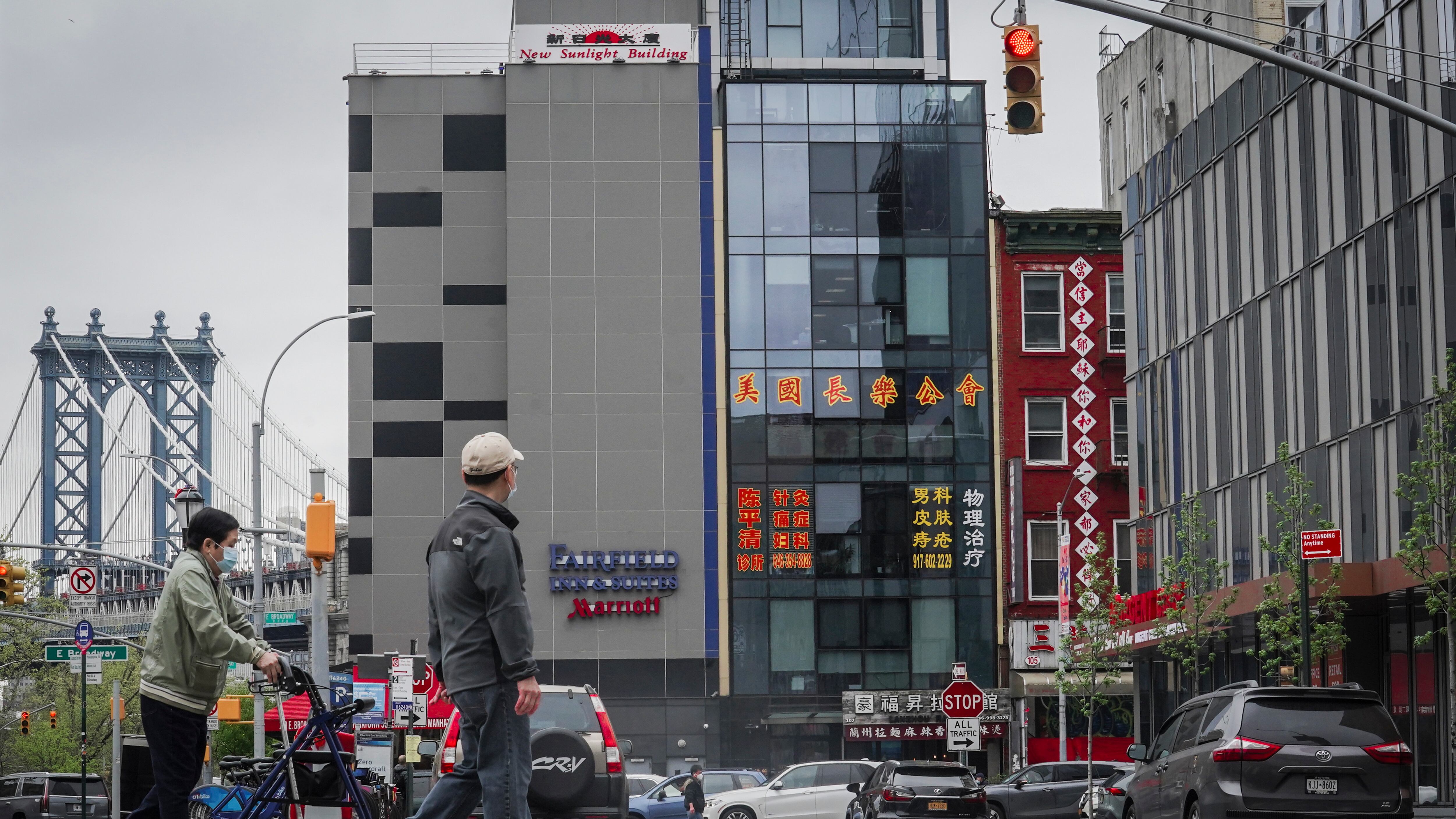 Un edificio de seis niveles, centro, en que las autoridades creen se encontraba un puesto de avanzada de la policía secreta china, en Chinatown, en Nueva York, el lunes 17 de abril de 2023. (AP Foto/Bebeto Matthews) AP (Bebeto Matthews/AP)
