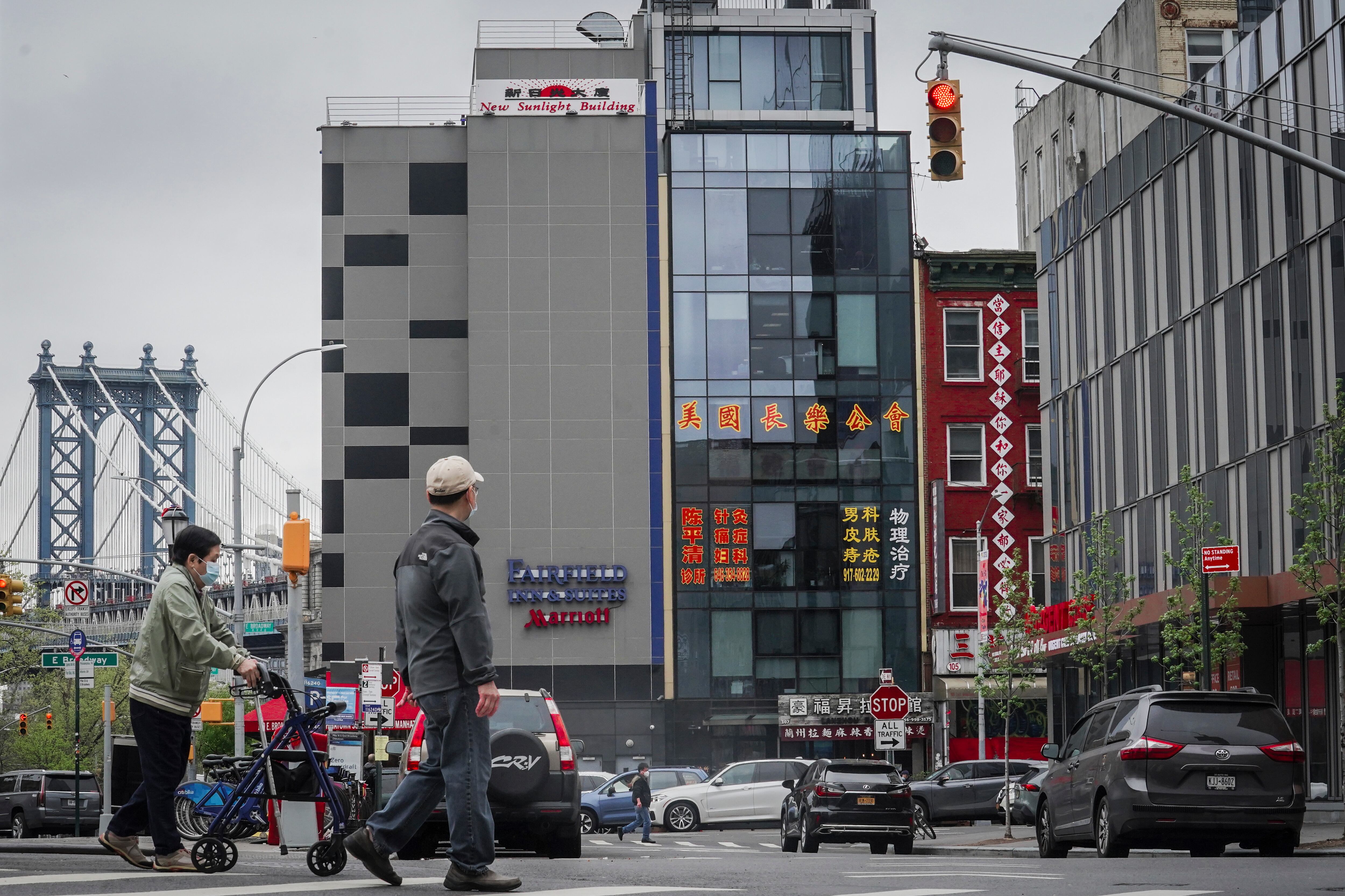 Un edificio de seis niveles, centro, en que las autoridades creen se encontraba un puesto de avanzada de la policía secreta china, en Chinatown, en Nueva York, el lunes 17 de abril de 2023. (AP Foto/Bebeto Matthews) AP (Bebeto Matthews/AP)