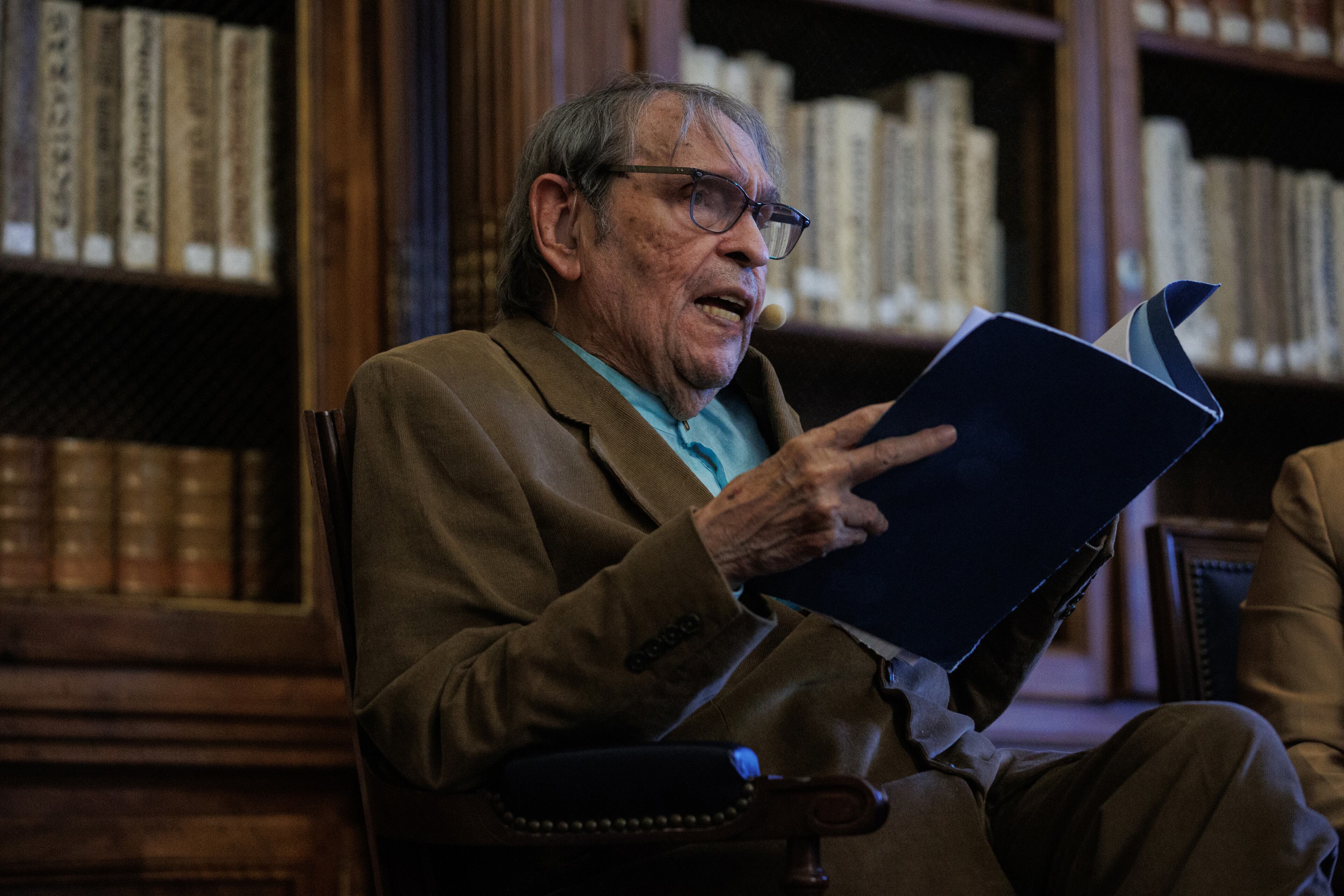 El escritor venezolano Rafael Cadenas, Premio Cervantes 2022, durante una rueda de prensa, en la sede de la Biblioteca Nacional de España, a 20 de abril de 2023, en Madrid (España). El 17 de abril comenzaron las actividades del Ministerio de Cultura y D Alejandro Martínez Vélez - Europa Press (Alejandro Martínez Vélez - Eur/Europa Press)