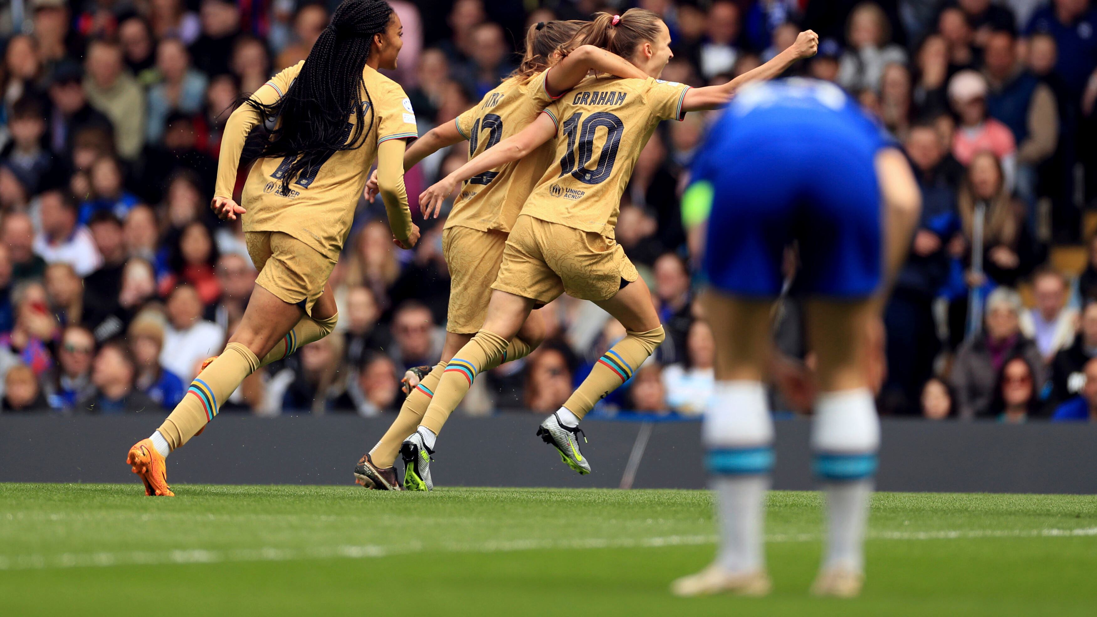 Con un gol de Caroline Graham Hansen, el Barça se impuso 1-0 en la ida disputada el sábado en Londres. Putellas acudió a Stamford Bridge y felicitó a sus compañeras tras el partido.