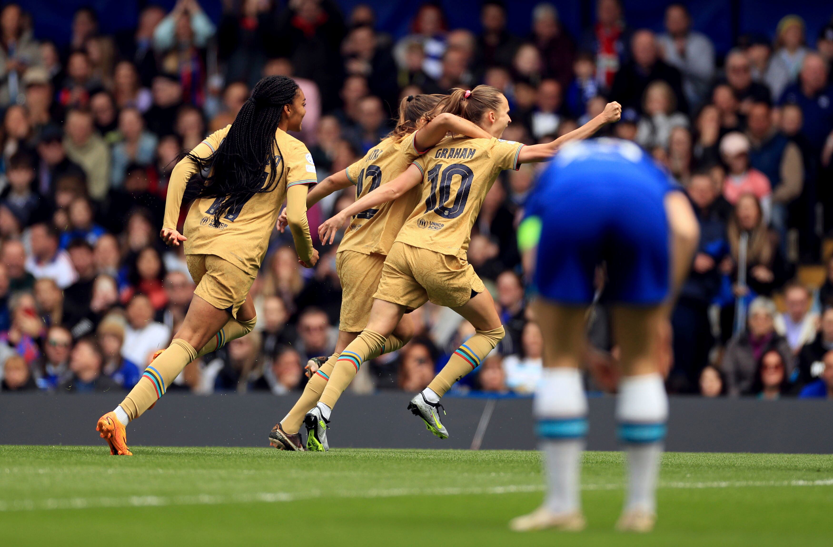 Con un gol de Caroline Graham Hansen, el Barça se impuso 1-0 en la ida disputada el sábado en Londres. Putellas acudió a Stamford Bridge y felicitó a sus compañeras tras el partido.