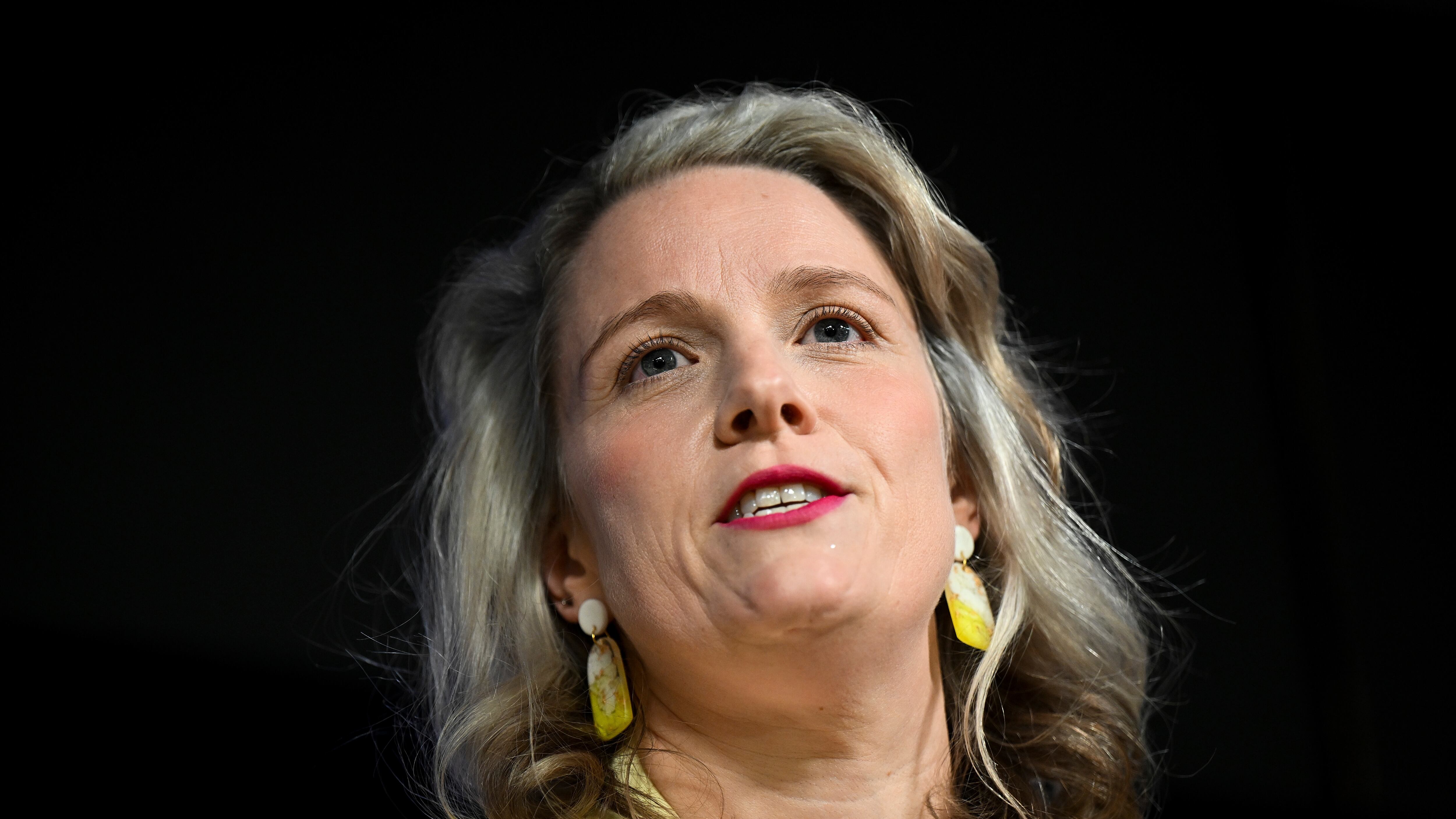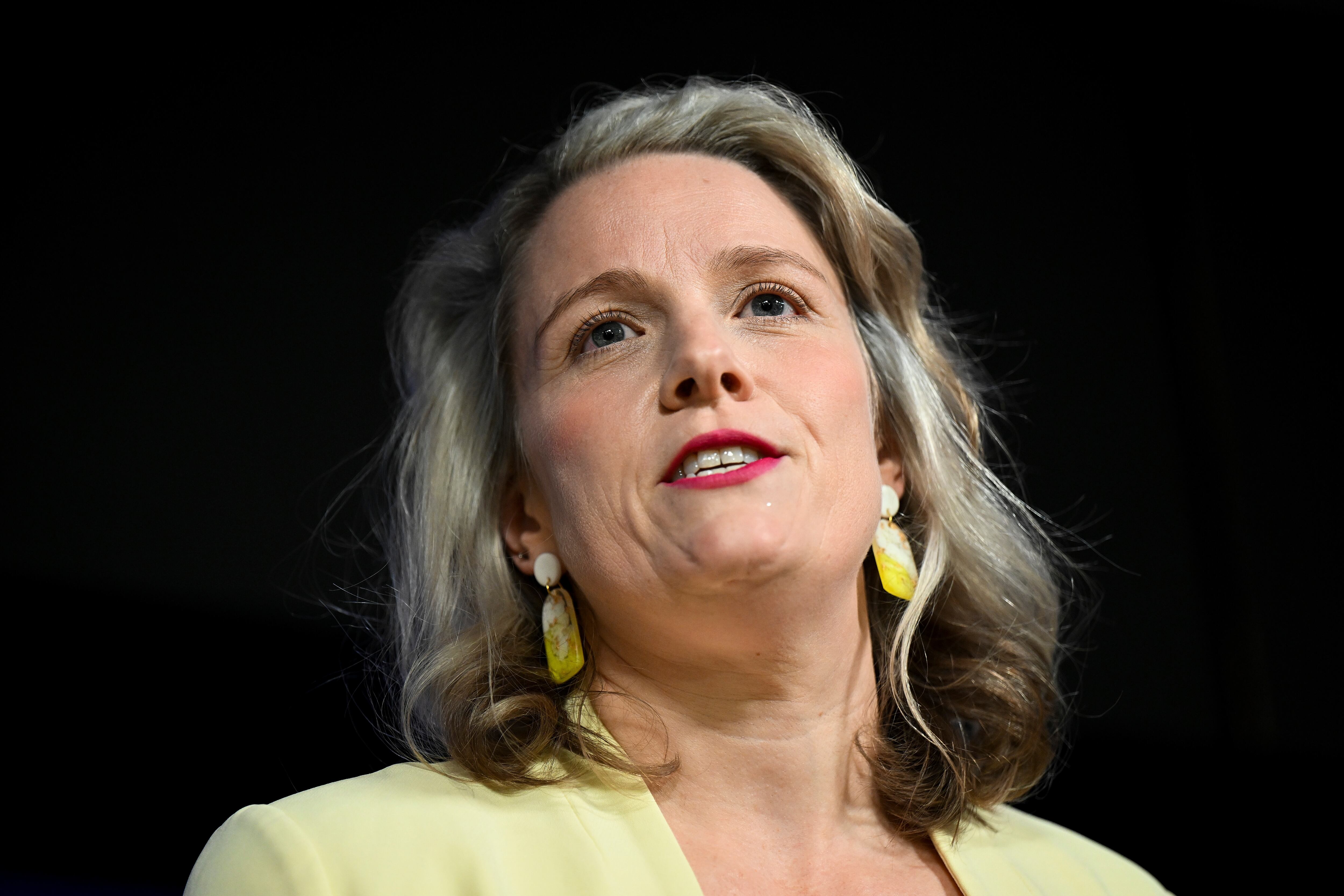 La ministra de Interior de Australia, Clare O'Neil, durante una intervención en el Club Nacional de Prensa, en Canberra, el 27 de abril de 2023. (Lukas Coch/AAP Image vía AP) AP (LUKAS COCH/AP)