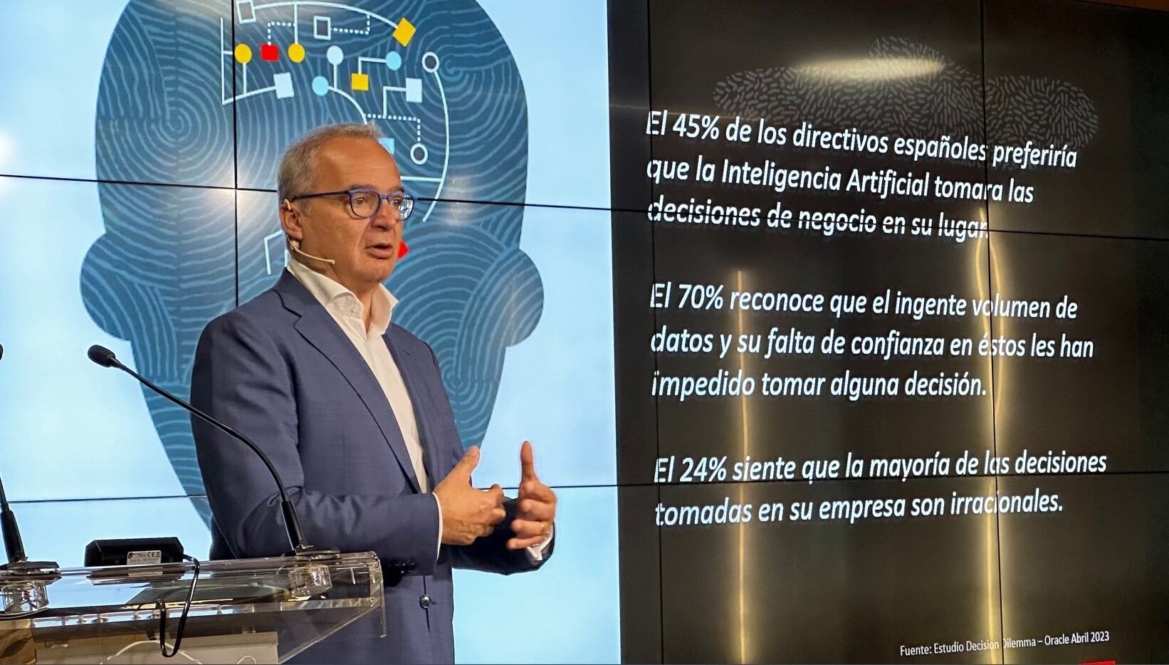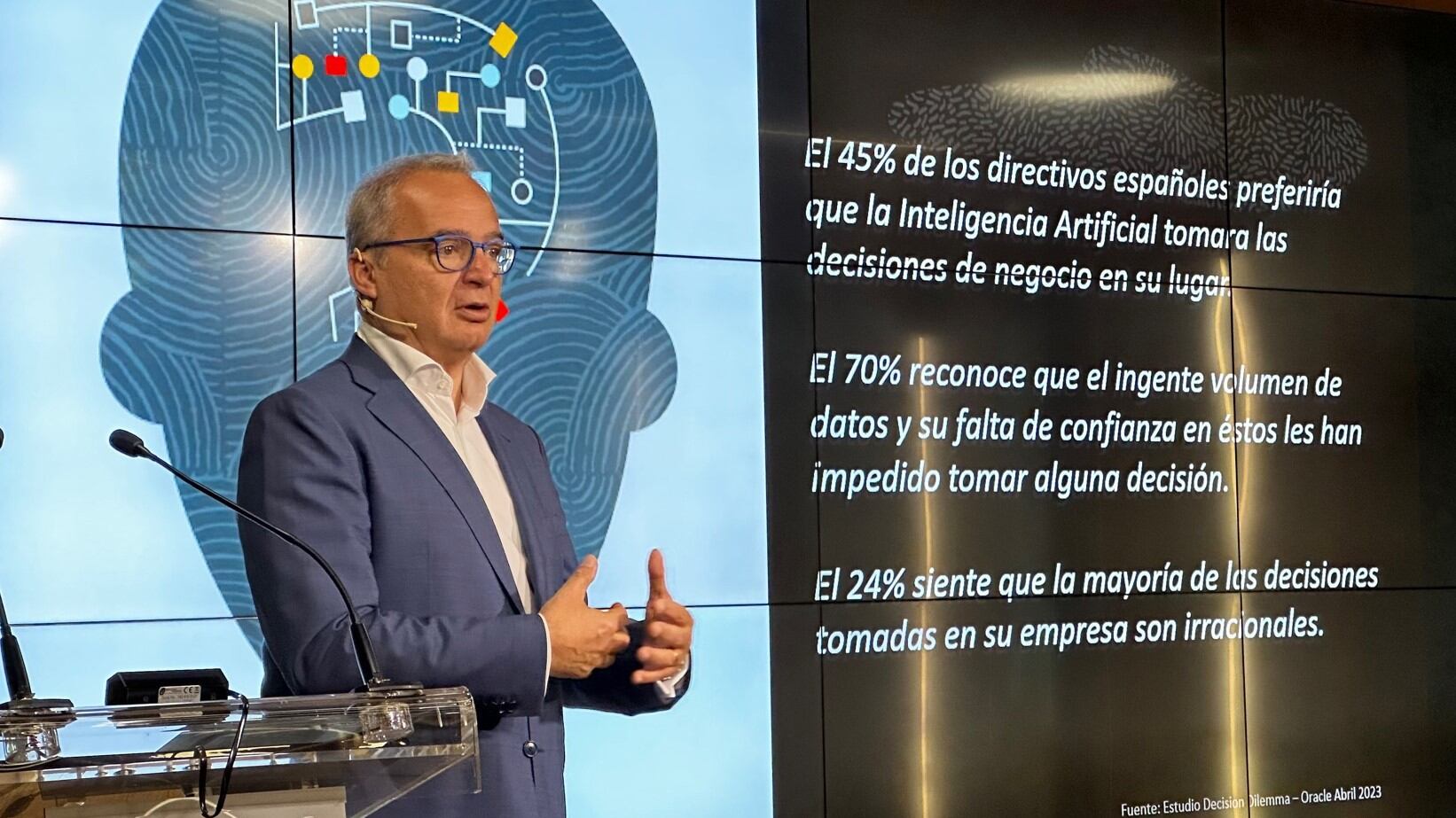 La apertura corrió a cargo de Albert Triola, director general de Oracle España, quien centró su intervención en cómo convertir los datos en innovación, tras recordar algunas de las conclusiones de un reciente estudio de la compañía (The Decision Dilemma), que pone de manifiesto que un 70% de los directivos españoles reconoce que el ingente volumen de datos y su falta de confianza en éstos les ha impedido tomar alguna decisión.