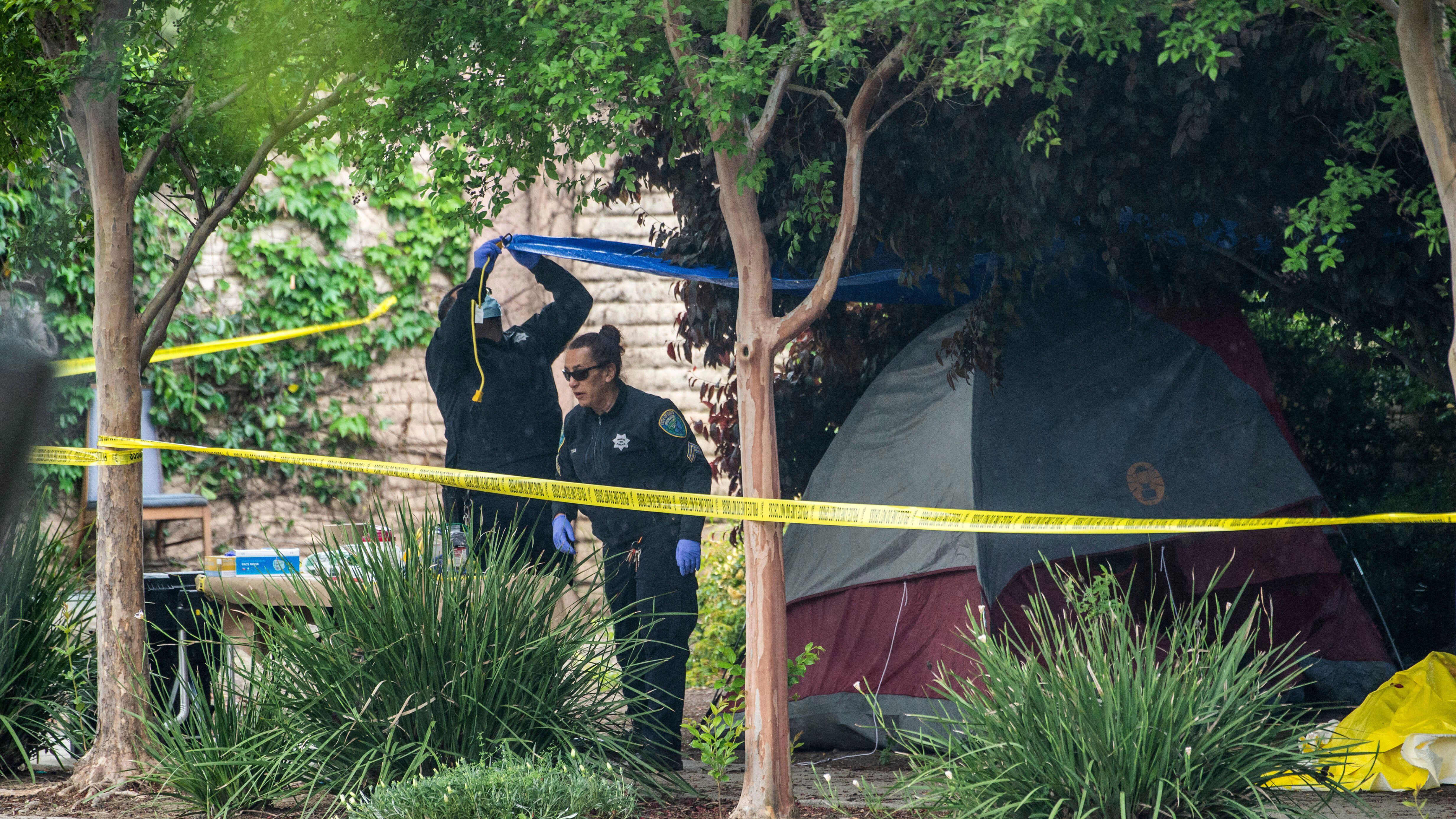 Los muertos fueron un indigente de 50 años que era conocido en la comunidad y un estudiante universitario de 20 años. Una mujer indigente que fue atacada el lunes por la noche dentro de su tienda de campaña se está recuperando.