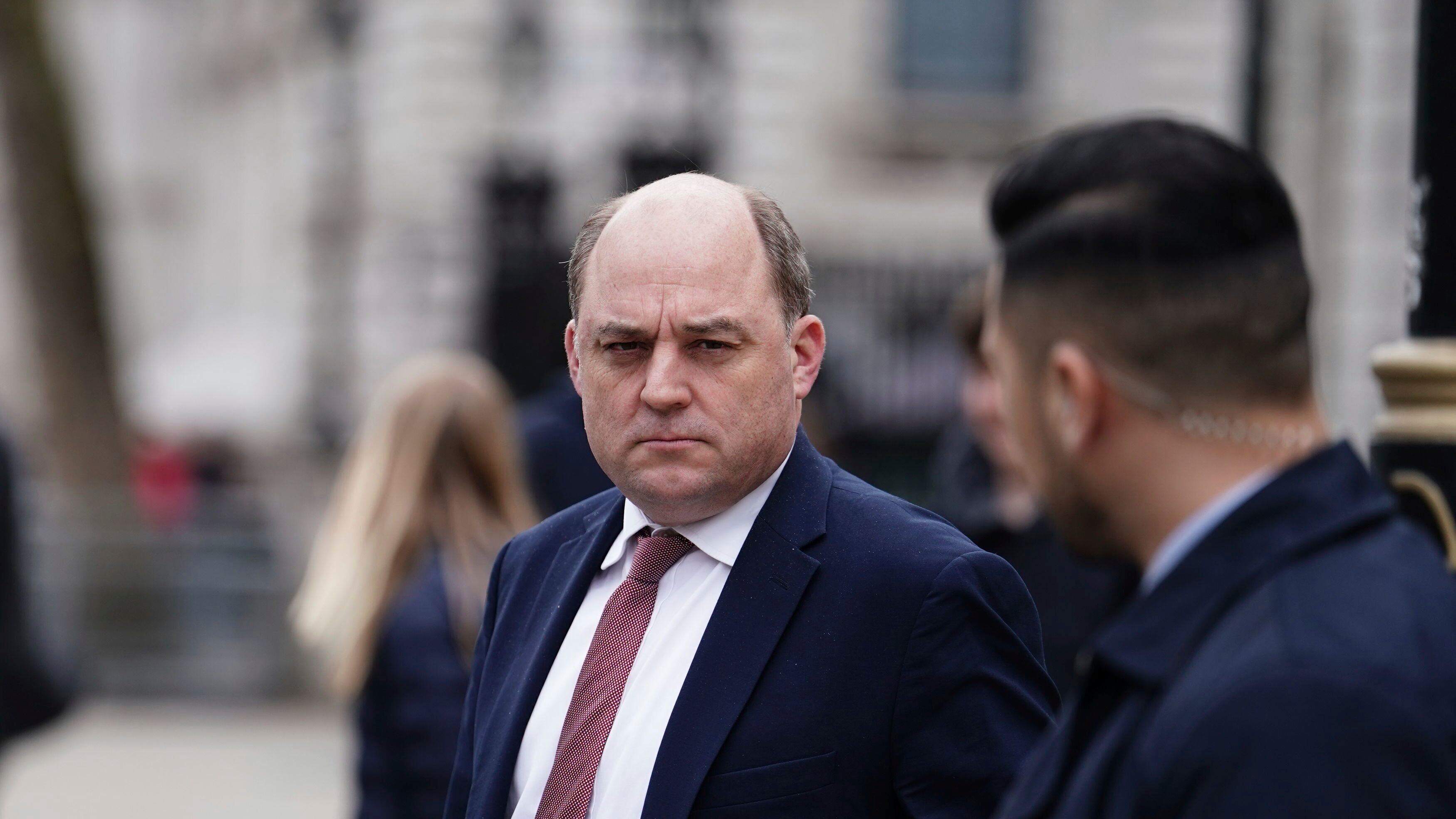 El ministro británico de Defensa, Ben Wallace, sale de su oficina en Whitehall, Londres, el 25 de abril de 2023. (Jordan Pettitt/PA vía AP) AP (Jordan Pettitt/AP)