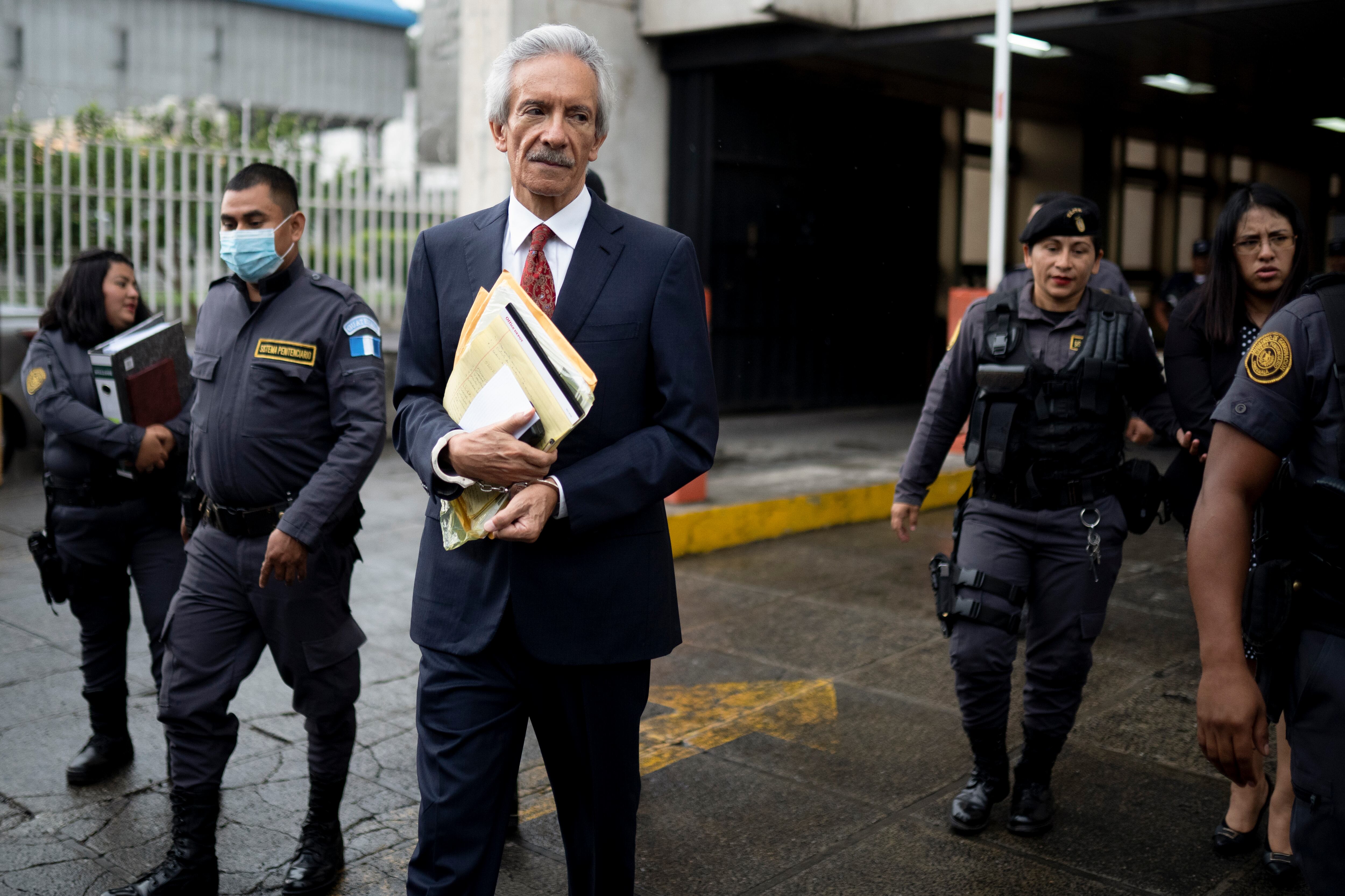 El galardonado periodista José Rubén Zamora es escoltado por la policía después de terminar el primer día de su juicio por cargos de lavado de dinero, en Ciudad de Guatemala, el martes 2 de mayo de 2023. (Foto AP/Santiago Billy) AP (Santiago Billy/AP)