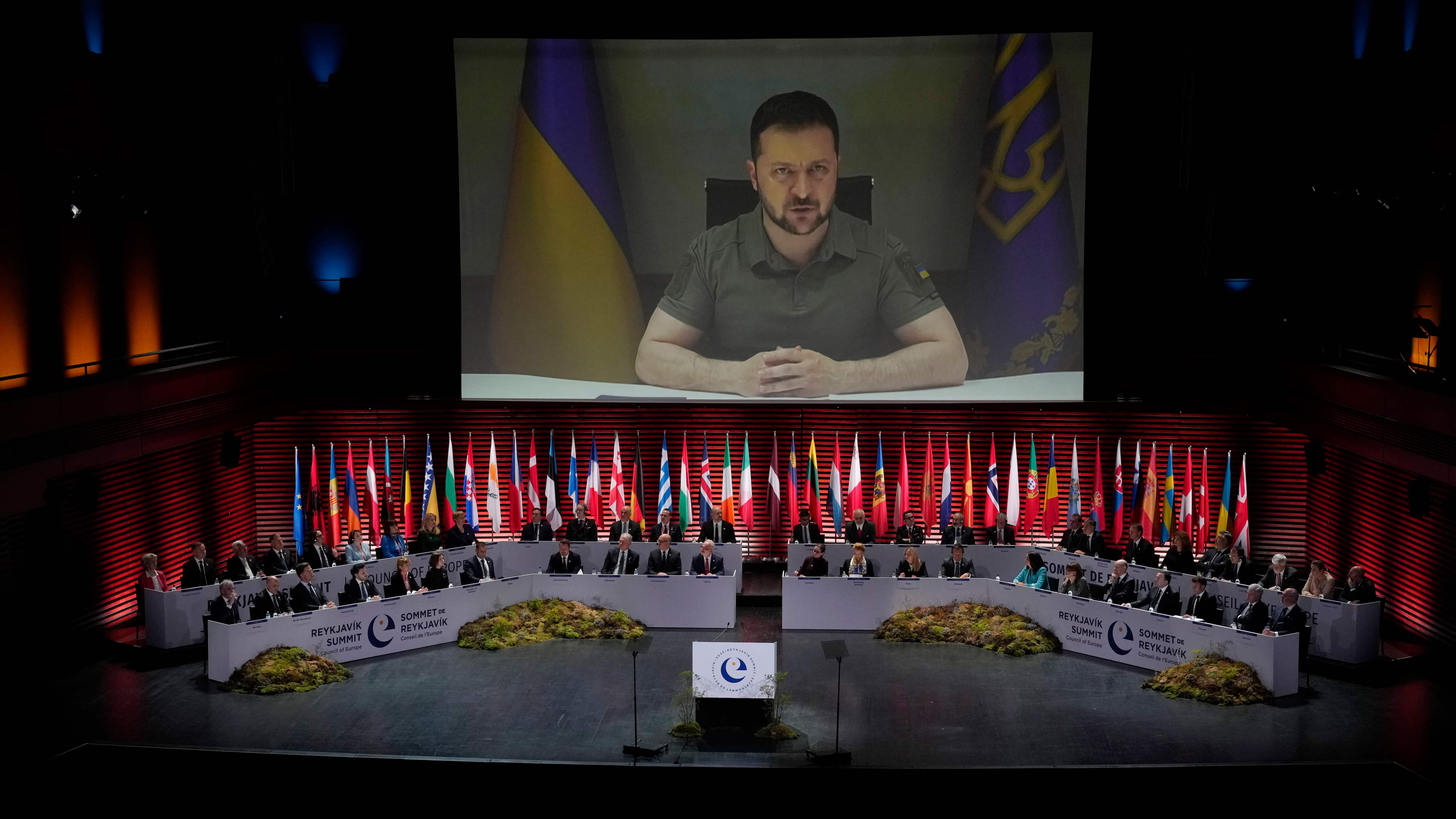 Decenas de los principales líderes de Europa llegaron a la lejana Islandia dispuestos a apretar los tornillos legales alrededor del Kremlin, después de que el presidente ucraniano, Volodymyr Zelenskyy, recibió muchos compromisos de equipo militar durante un largo fin de semana de gestiones diplomáticas en Italia, Alemania, Francia y Reino Unido.
