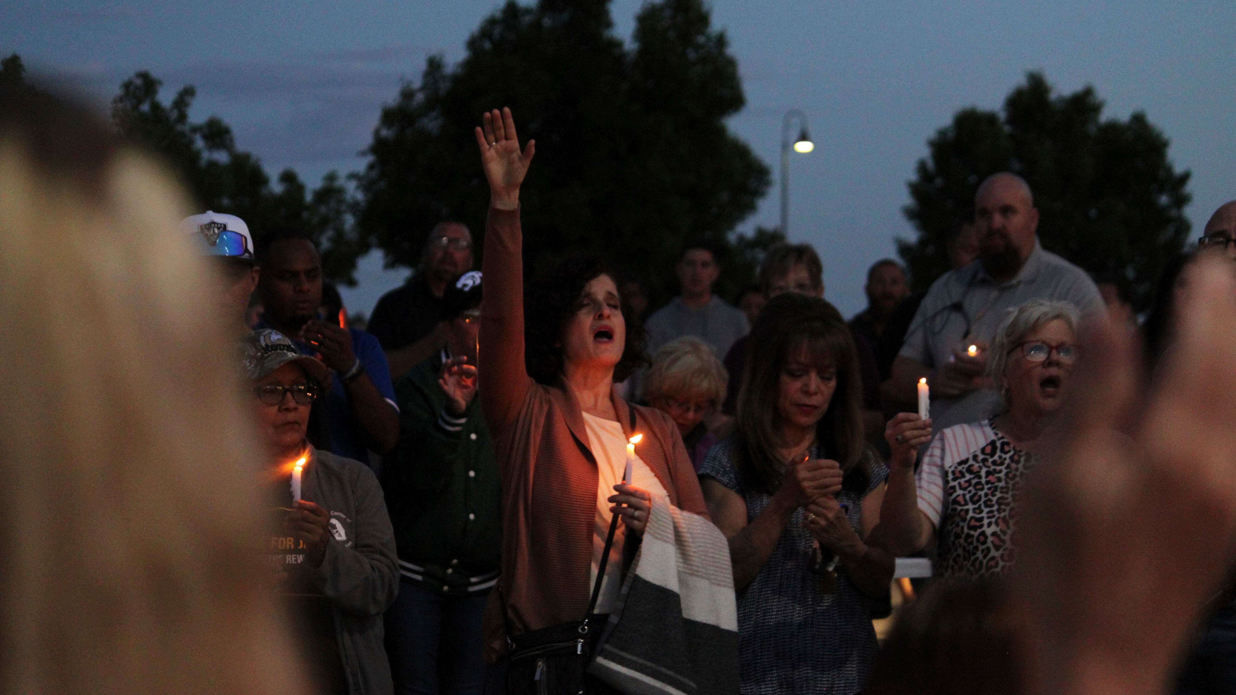 En la iglesia Hills, a unas pocas millas del lugar del ataque, docenas de personas se congregaron para rezar al anochecer del lunes. Algunos se abrazaron mientras escuchaban. El alcalde y agentes de seguridad estaban entre la multitud.