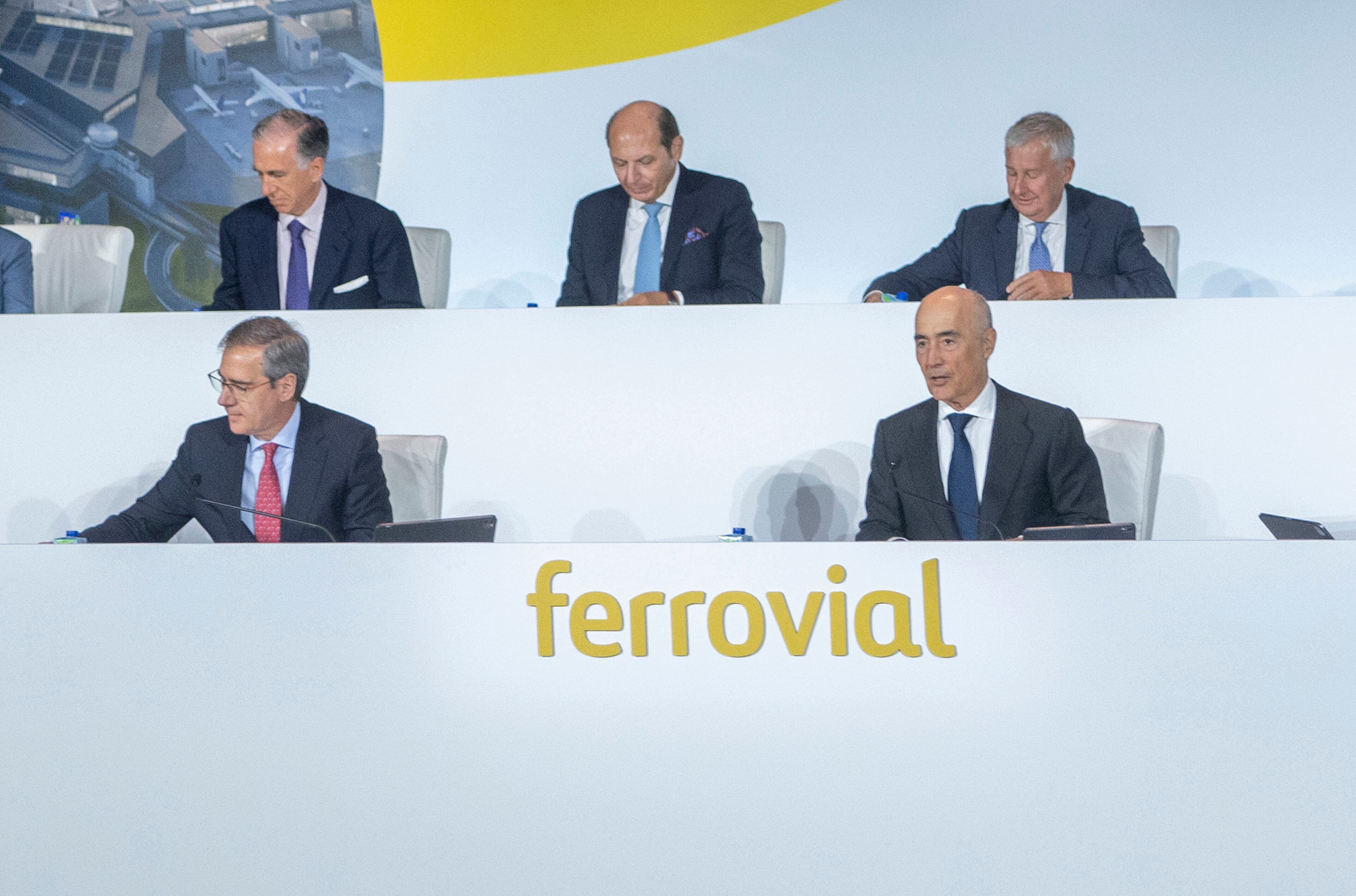 El consejero delegado de Ferrovial, Ignacio Madridejos (i) y el presidente de Ferrovial, Rafael del Pino (d), durante la Junta General Ordinaria de Accionistas de Ferrovial, en el auditorio ONCE, a 13 de abril de 2023, en Madrid (España). Durante la Junt Alberto Ortega - Europa Press (Alberto Ortega - Europa Press/Europa Press)