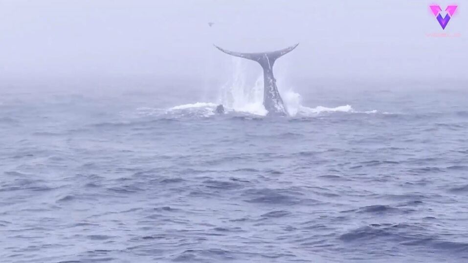 La misma ballena continuó abriendo brechas y lanzando la cola durante los siguientes 90 minutos, todo ello muy cerca de los barcos de observación de cetáceos que disfrutaban del espectáculo.