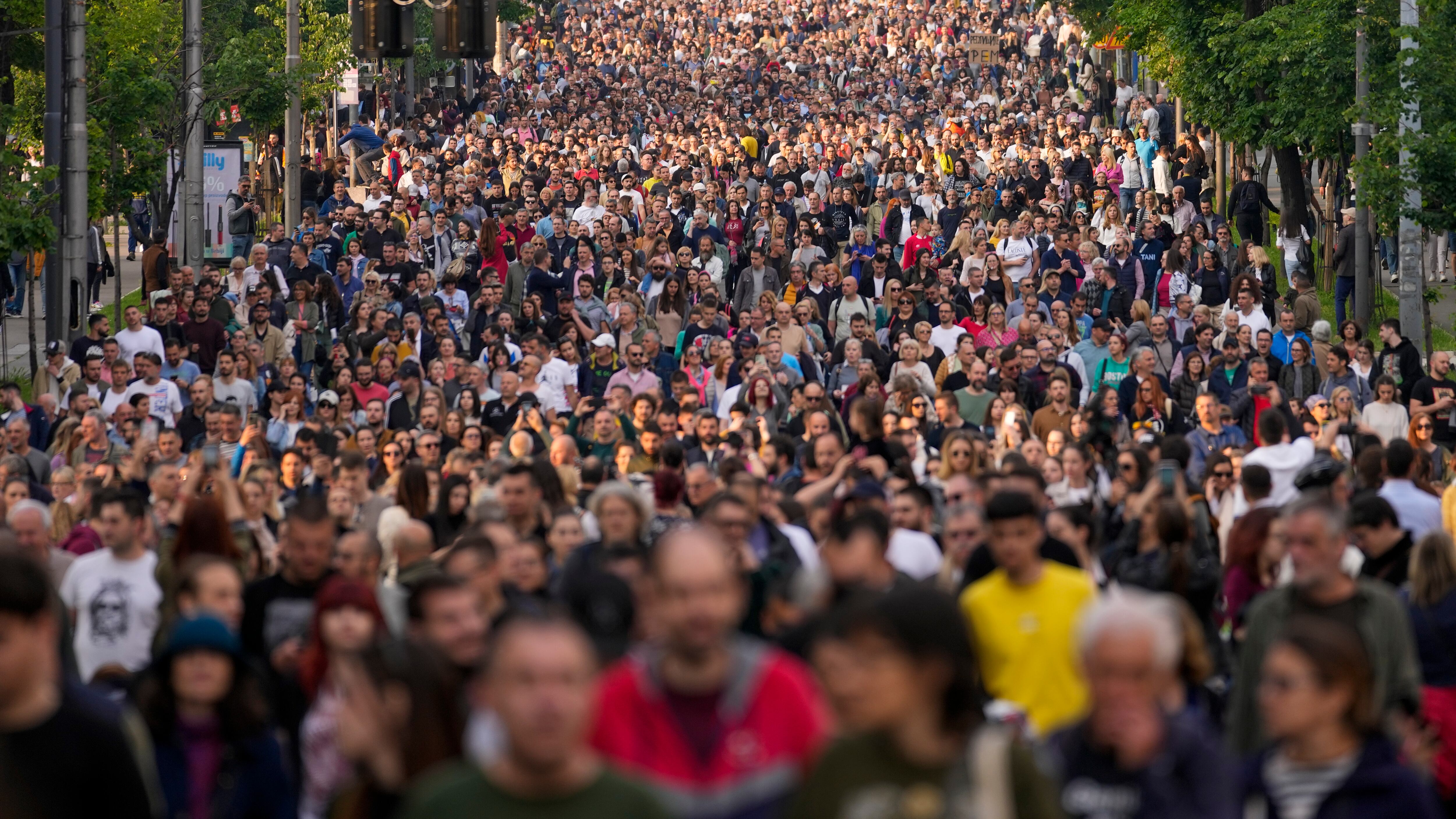 Decenas de miles de partidarios de la oposición, algunos de los cuales exigían la renuncia de Vucic, salieron a las calles bajo la lluvia un día después de que los seguidores del presidente realizaran un acto igualmente multitudinario en la capital. La mayoría de estos fueron transportados en autobuses desde otras partes del país.