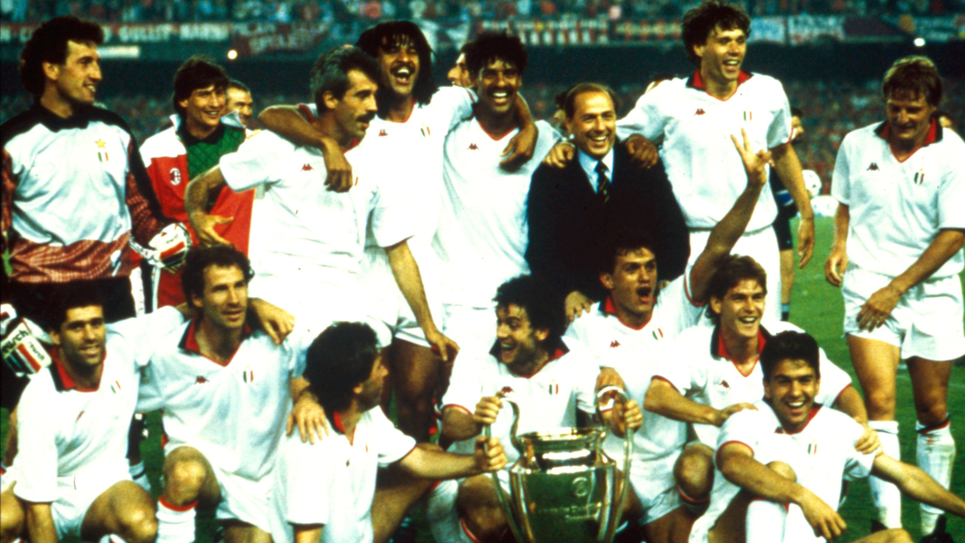 El momento cumbre llegó dos temporadas después al encadenar títulos de la Copa de Europa, con un equipo que tenía a un tridente de astros neerlandeses: Marco van Basten, Ruud Gullit y Frank Rijkaard.