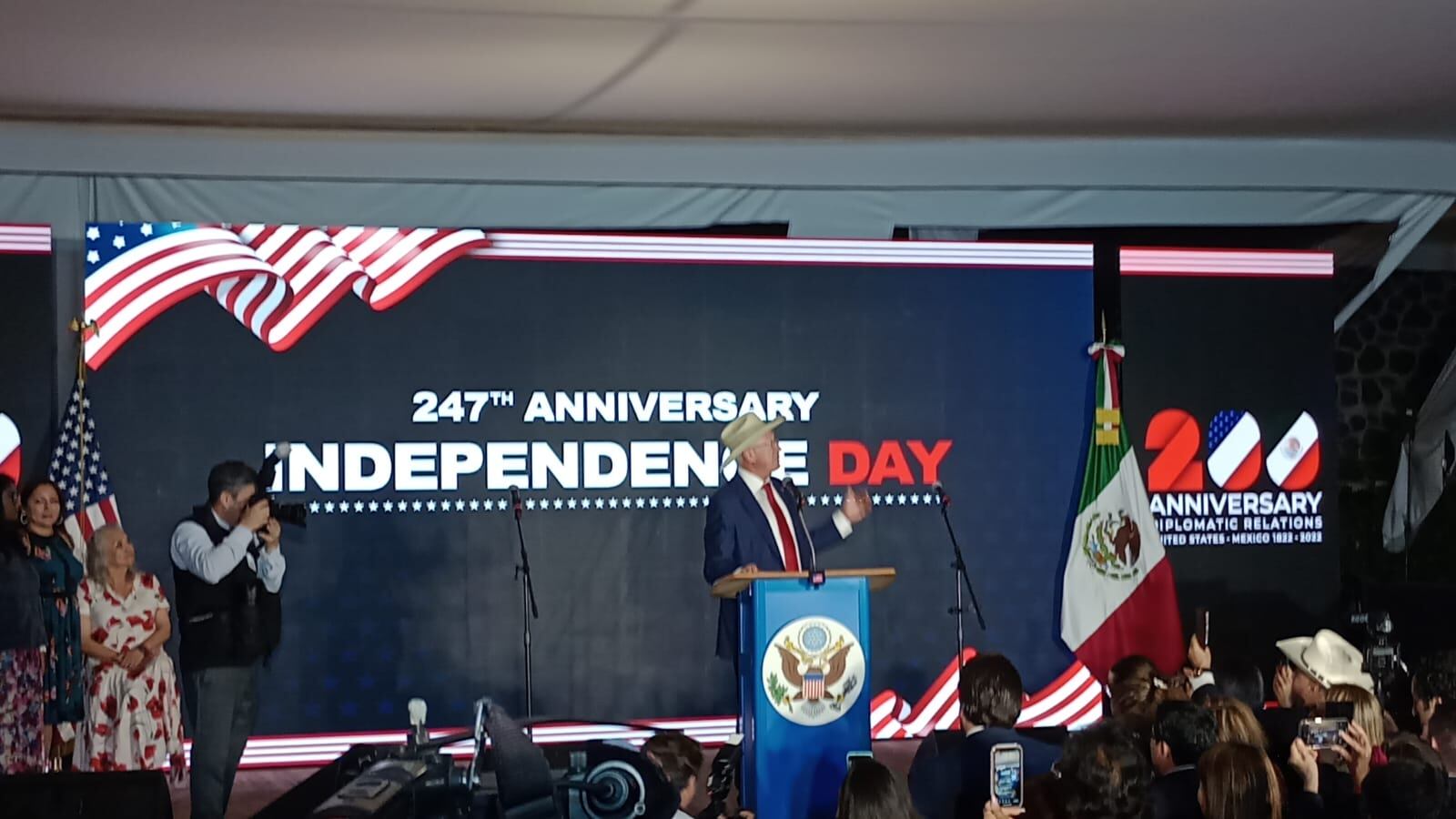 Durante la ceremonia del 247 aniversario de la independencia de Estados Unidos, que se celebra el 4 de julio, el embajador dijo que también se conmemoran los dos siglos de historia compartida y la grandeza entre ambas naciones.