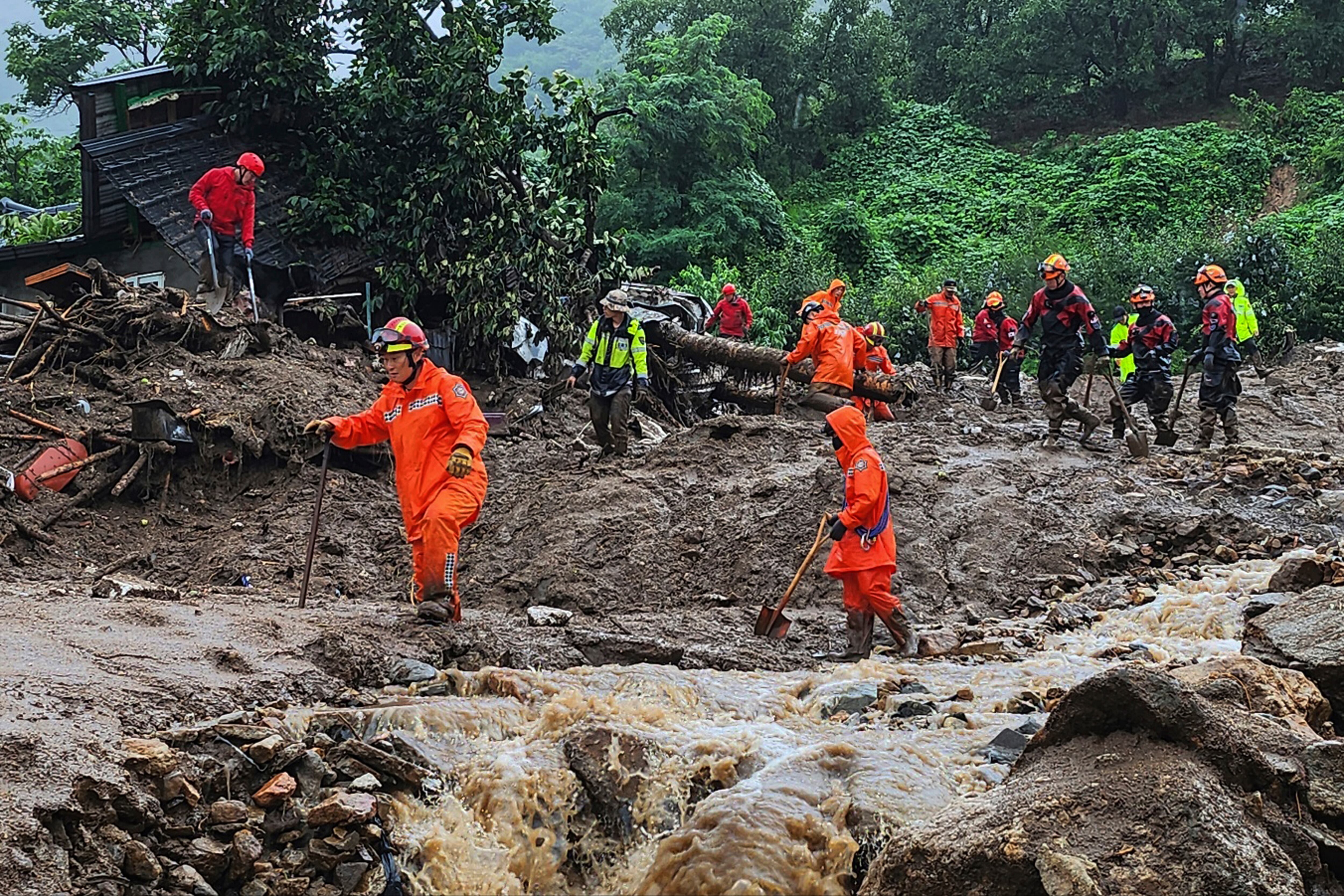 El reporte añade que dos personas estaban desaparecidas el sábado en medio de inundaciones en el poblado central de Yecheon. Cinco personas, dijo, resultaron heridas por accidentes causados por el alud el viernes y sábado, incluyendo el descarrilamiento de un tren.
