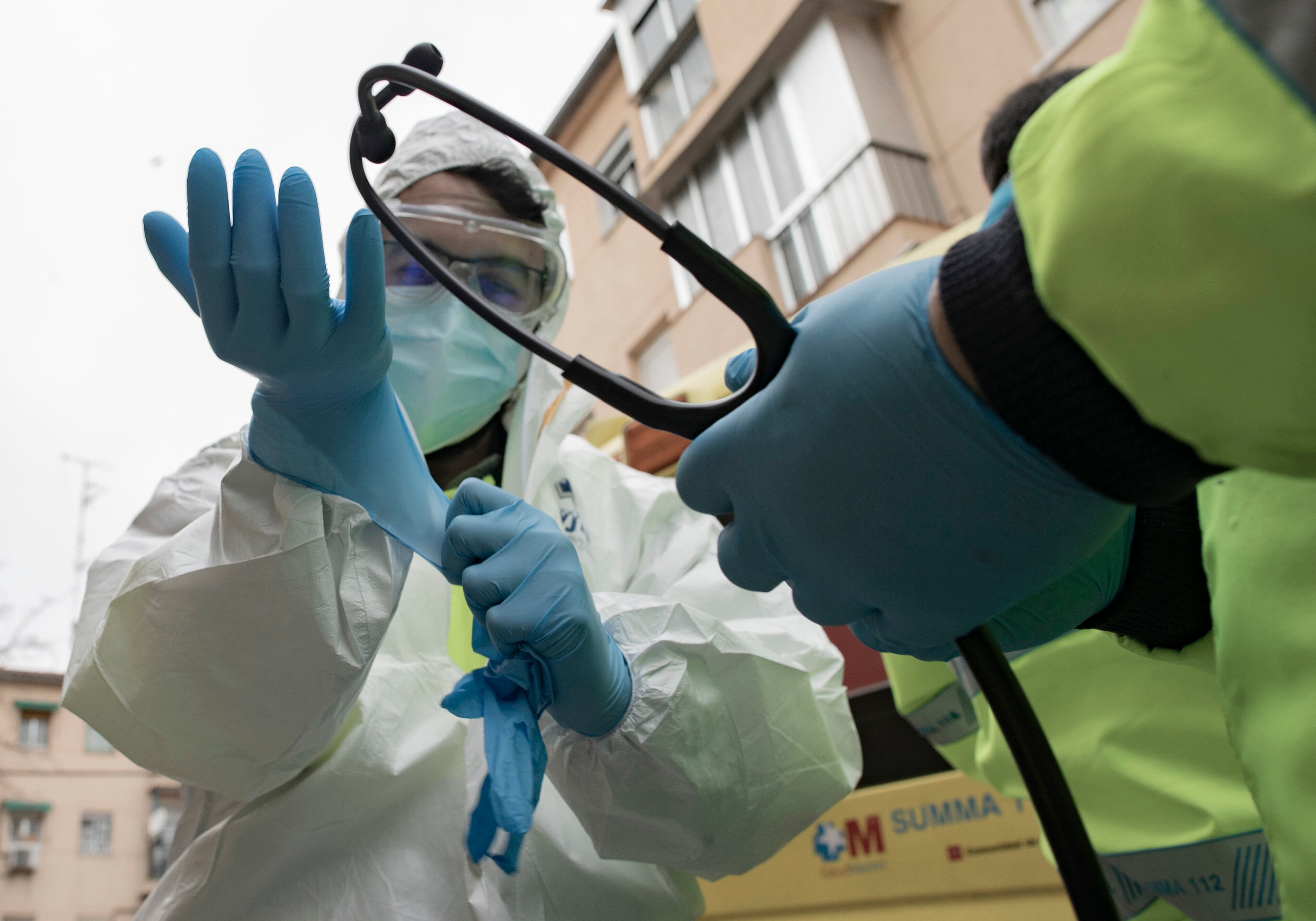 Archivo - Un trabajador de una UVI móvil del SUMMA 112 se pone los guantes durante una jornada de trabajo, en Madrid (España), a 29 de enero de 2021. El Servicio de Urgencia Médica de la Comunidad de Madrid SUMMA 12, tiene la función de atender las ur Eduardo Parra - Europa Press - Archivo (Eduardo Parra - Europa Press/Europa Press)