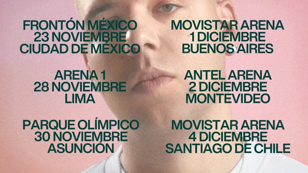 El artista español es uno de los cantantes más escuchados en todo el mundo, según datos de Spotify. Quevedo iniciará su gira el próximo 23 de noviembre en México, (Ciudad de México, Frontón Mexico), y continuará el 28 de noviembre en Perú (Lima, Arena 1), el día 30 en Paraguay (Asunción, Parque Olímpico), 1 de diciembre en Argentina (Buenos Aires, Movistar Arena), el 2 de diciembre en Uruguay (Montevideo, Antel Arena) y cerrará el dia 4 Chile (Santiago de Chile, Movistar Arena).