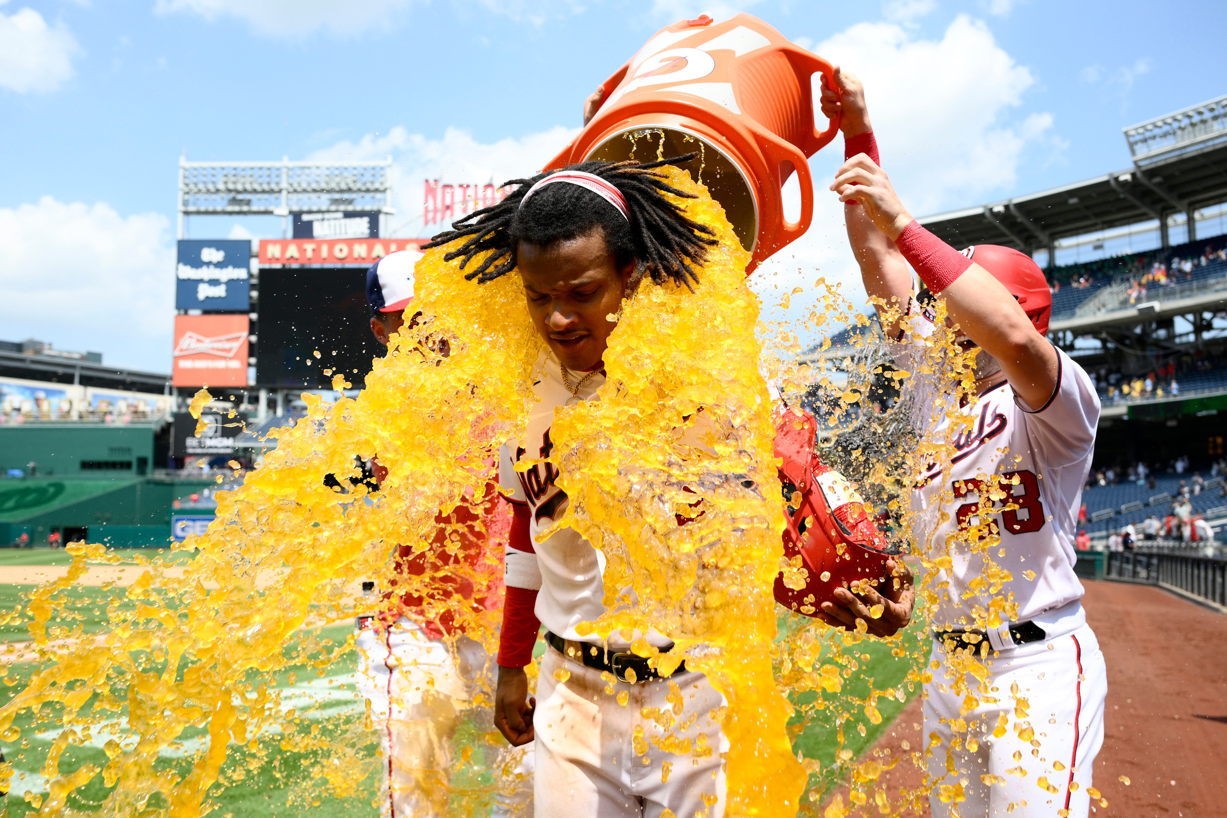 Un día después de remontar un déficit 5-2 con cuatro carreras en el octavo en el segundo juego de la serie de tres, Lane Thomas y Jeimer Candelario abrieron el noveno con boletos ante Daniel Bard (4-2) en el último. Joey Meneses, cuyo jonrón de tres carreras fue la diferencia la noche del martes, dio un sencillo para llenar las bases.