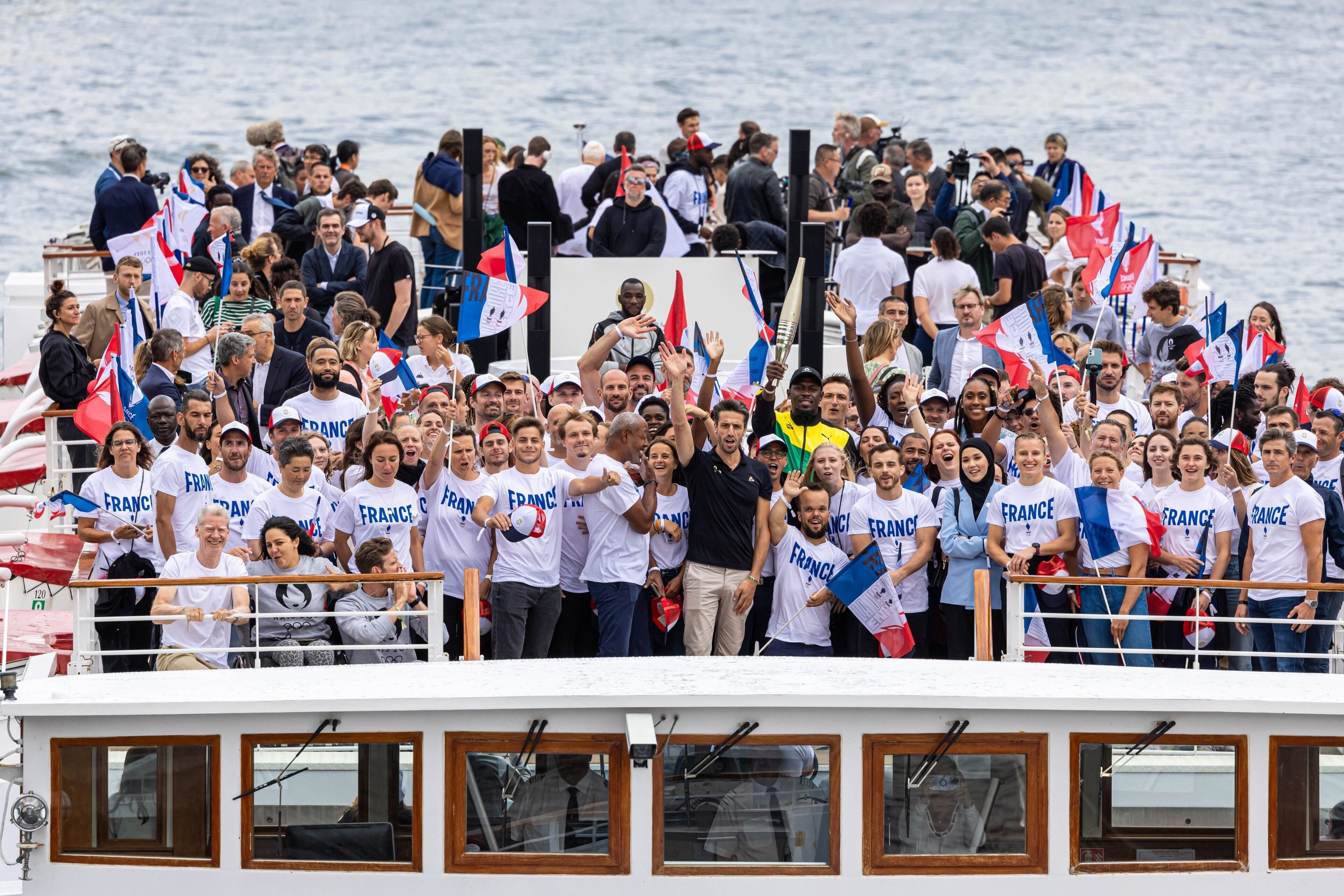 En compañía de miles de aficionados y también de Tony Estanguet, uno de los exolímpicos más exitosos de Francia y actual presidente del Comité Organizador de París 2024, el plusmarquista jamaicano presentó desde un gran barco y con la Torre Eiffel de fondo la antorcha que hará el recorrido hasta el pebetero instalado en la capital gala.