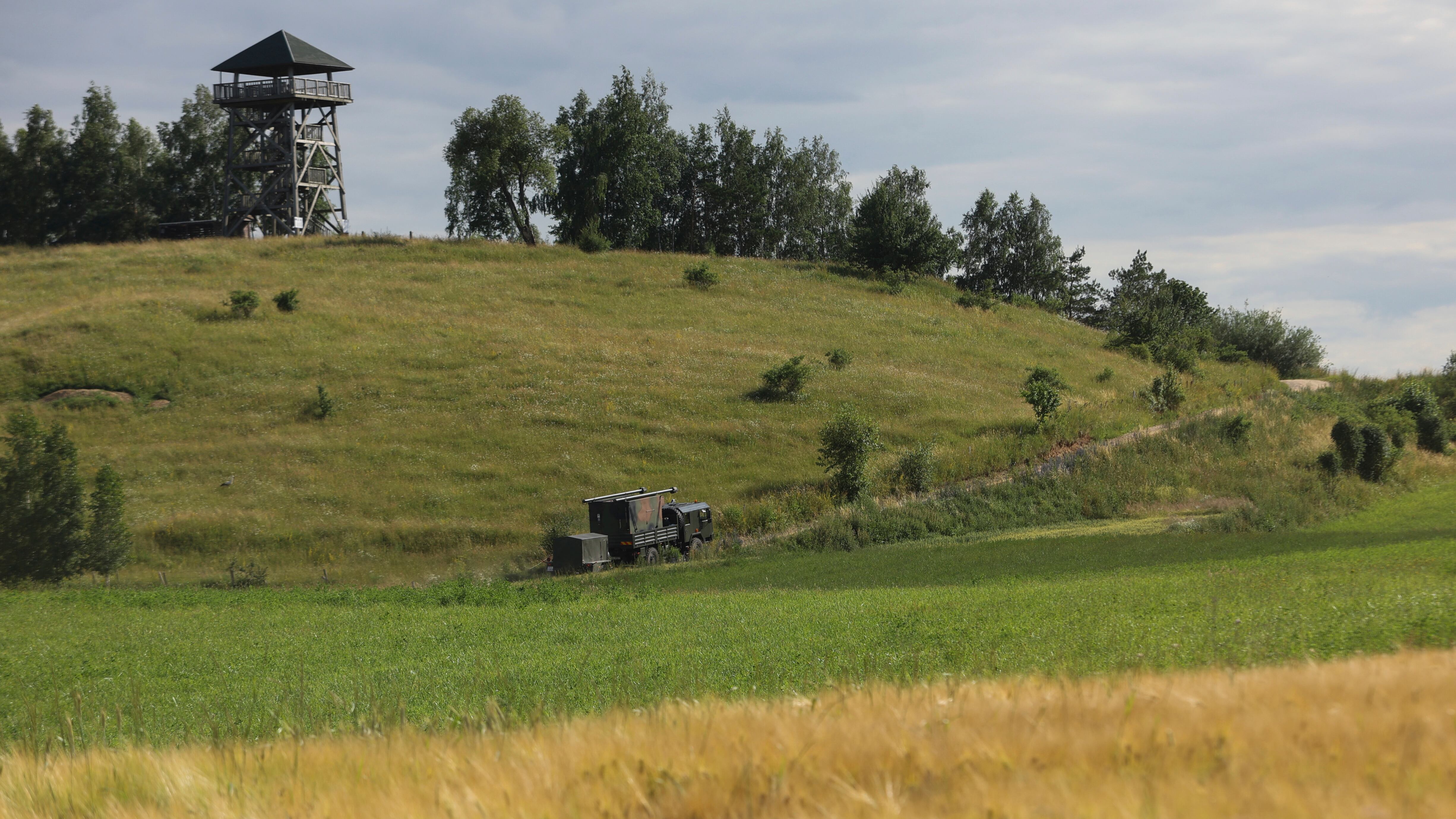 ARCHIVO - Un camión militar sube la cuesta en Baranowo, Polonia, 7 de julio de 2022. El corredor Suwalki, un tramo de unos 100 kilómetros a lo largo de la frontera lituano-polaca entre Bielorrusia y el exclave ruso de Kaliningrado, es considerado un pun AP (Michal Dyjuk/AP)