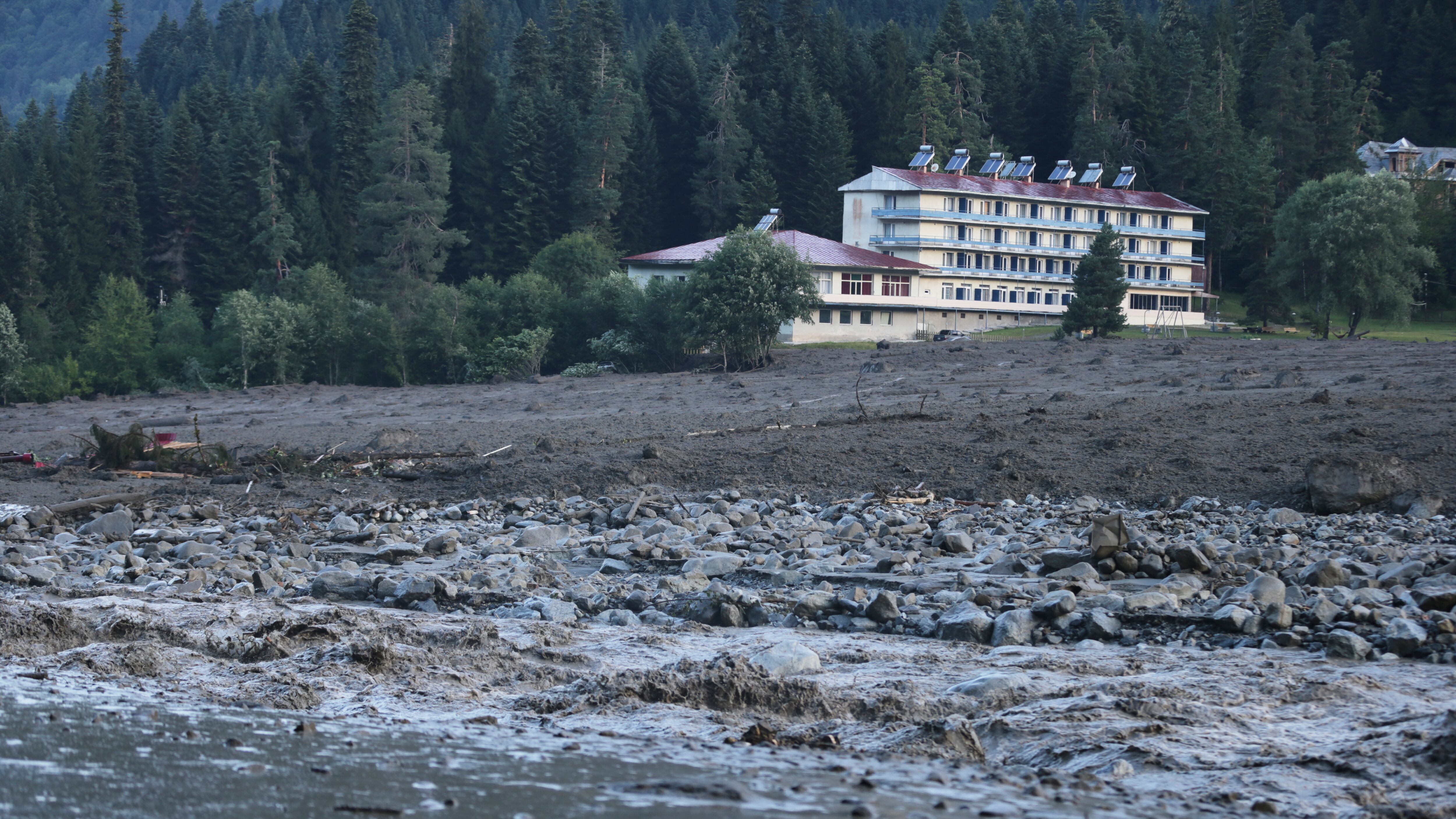 El deslave golpeó la zona de Shovi el jueves. Shovi, a unos 140 kilómetros (85 millas) al noroeste de Tiflis, la capital, es popular por sus manantiales minerales y las vistas de montañas escabrosas, y en ella hay cabañas y pequeños hoteles.