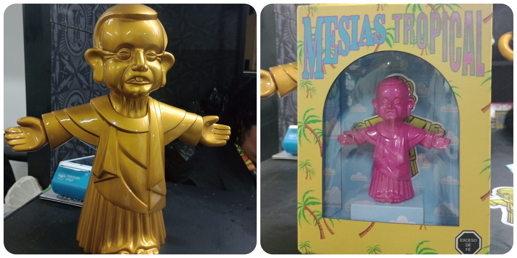 No podría faltar la picardía mexicana en el diseño de fuguras del art toy como “El Mesias Tropical”. Es lo noble y lo bonito de este arte en el que se puede jugar con cualquier cosa que vemos en el día a día en el que podemos tener un art Toy desde algo político, como algo de antaño, una caricatura o una figura de Disney”, dijo Pachín Sánchez.