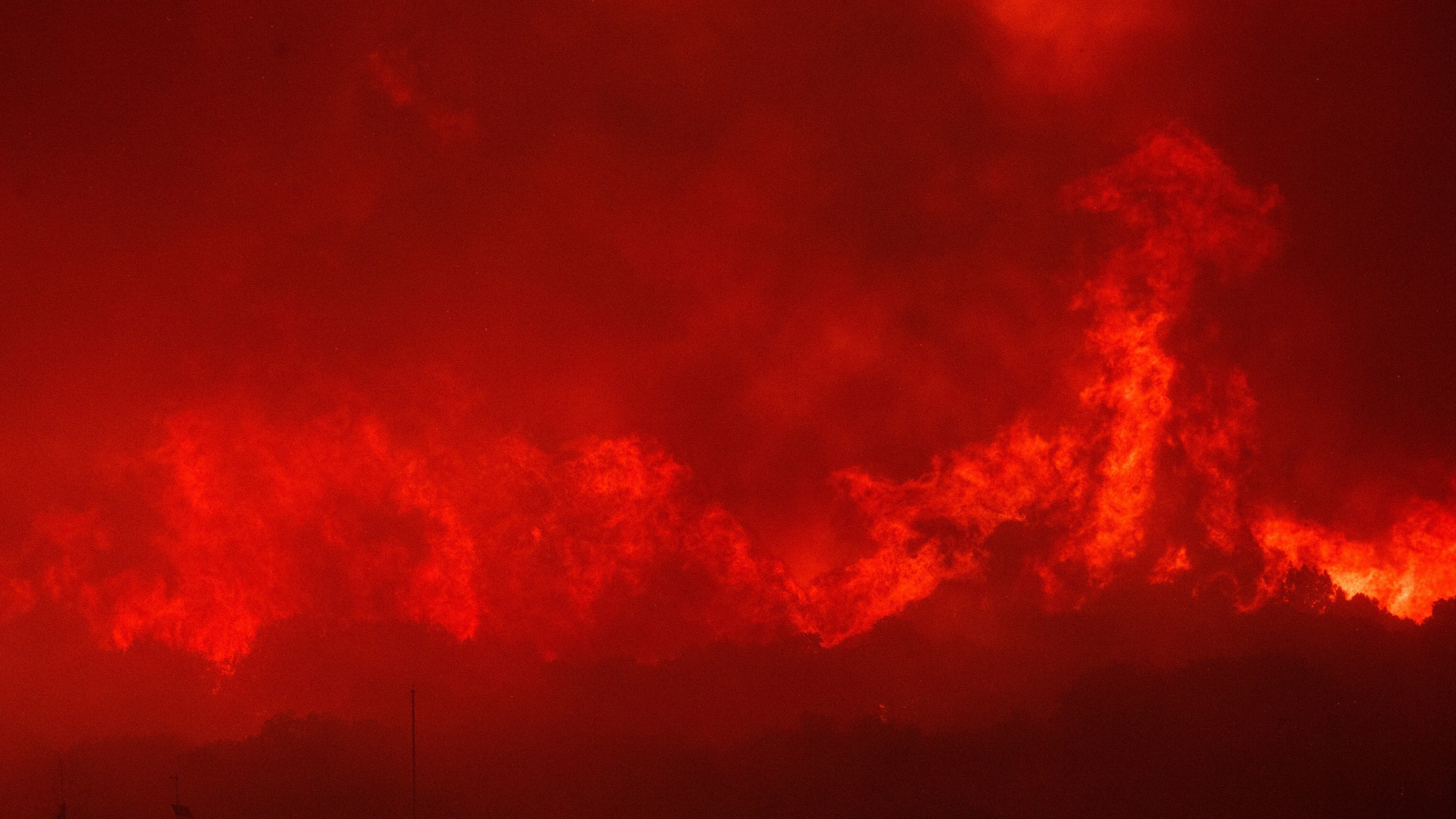En el nordeste de Grecia, un enorme muro de llamas avanzó durante la noche por los bosques hacia Alejandrópolis, lo que obligó a las autoridades a evacuar otros ocho pueblos y un hospital de la ciudad. Las llamas tiñeron de rojo el cielo sobre la región, ocultando el sol tras el humo asfixiante mientras los copos de ceniza flotaban en el aire.