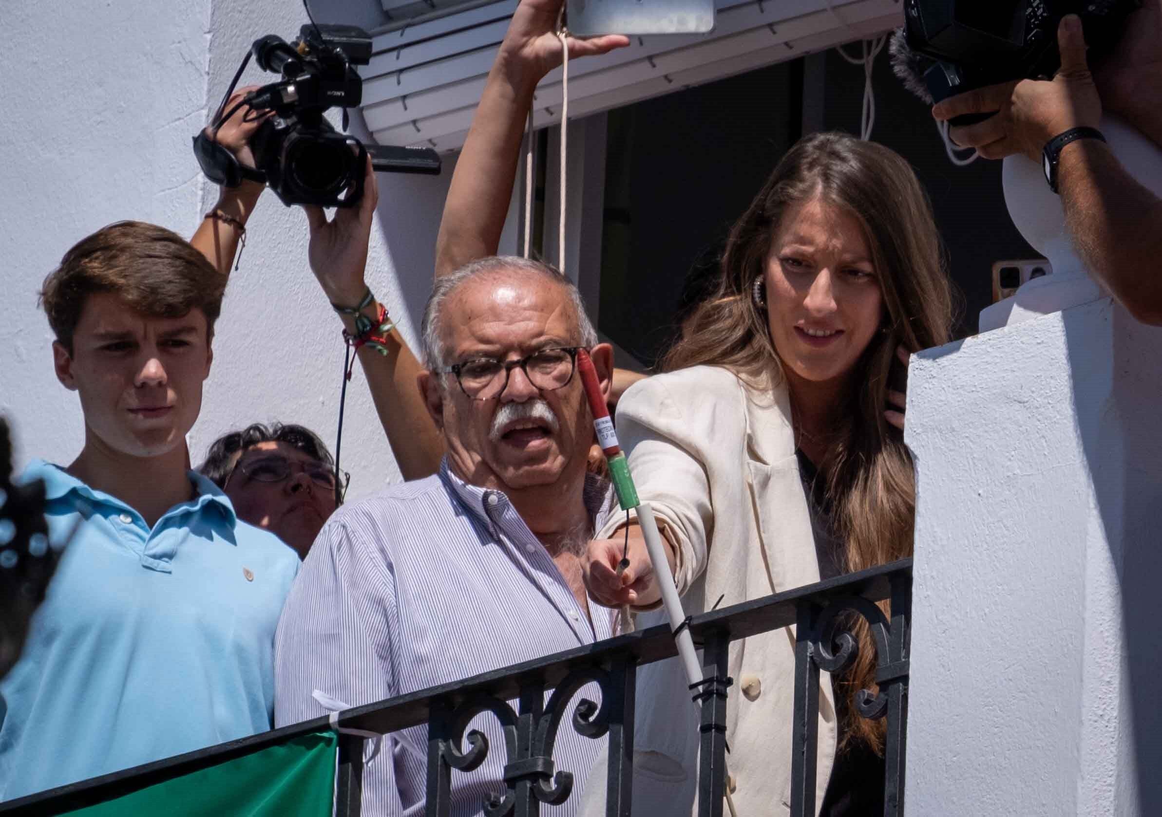 El presidente de la Diputación Provincial, David Toscano, ha querido acompañar a los vecinos de trigueros al acto de apertura de sus fiestas, subiendo al balcón del Consistorio junto al alcalde de Trigueros, Vidal Blanco; y la diputada provincial y concejala de Festejos de la localidad, Gracia Baquero, entre otros representantes municipales. Al acto también han asistido ganaderos y novilleros, protagonistas de los espectáculos que tendrán lugar a lo largo de los próximos días.