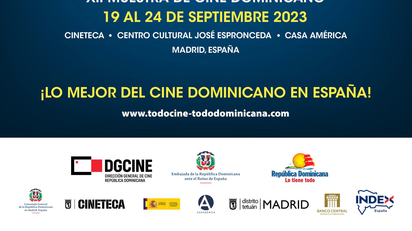 Esta destacada muestra cinematográfica se llevará a cabo en el marco de las actividades organizadas por la Embajada de la República Dominicana ante el Reino de España, la Dirección General de Cine (DGCINE), y el Ministerio de Turismo (MITUR), con la valiosa colaboración de CINETECA, el Centro Cultural José de Espronceda y la Casa de América.