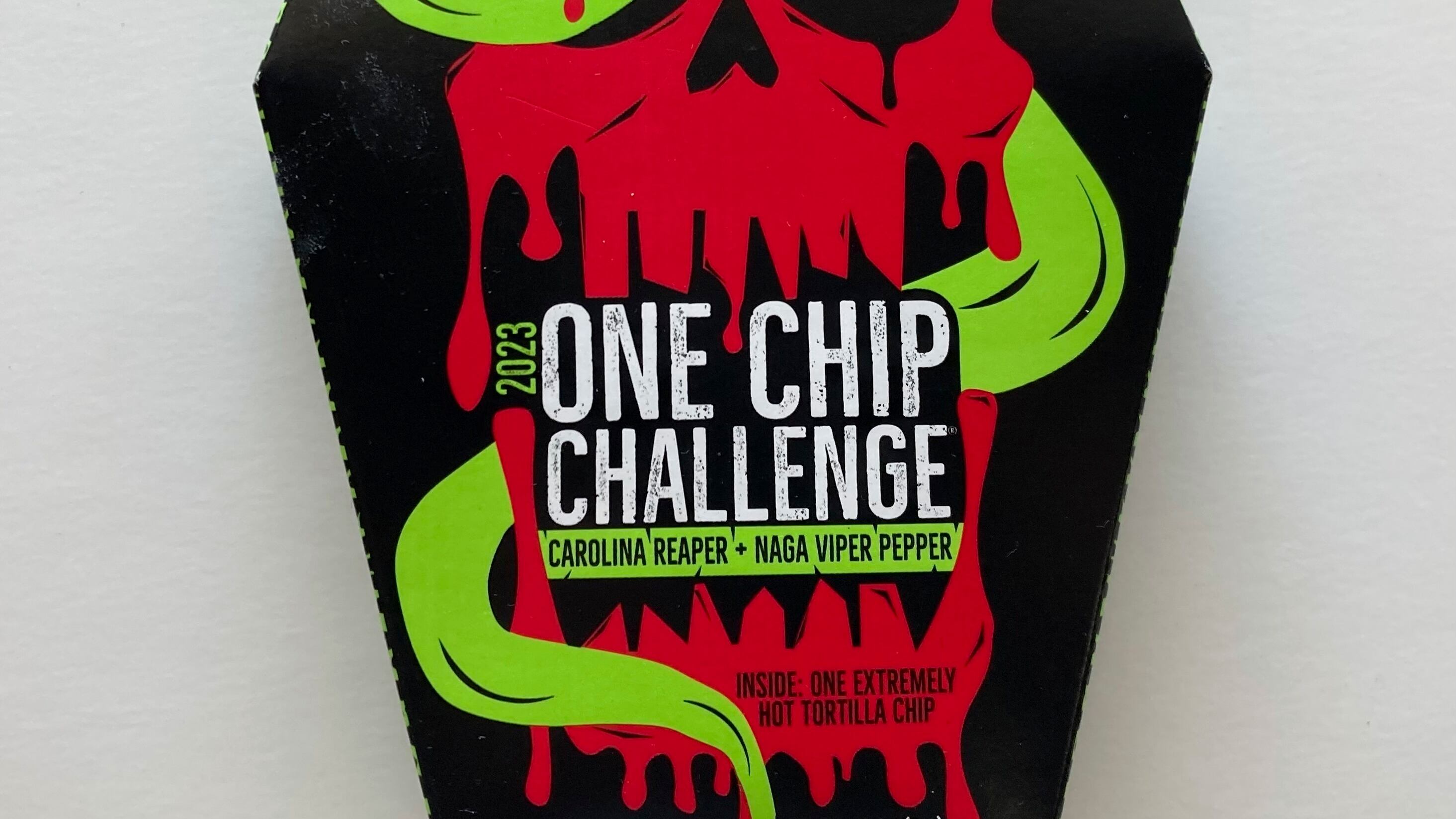 La fritura One Chip Challenge se vende por alrededor de 10 dólares y viene envuelta en un una bolsa sellada de aluminio dentro de una caja de cartón con forma de féretro. El paquete advierte que la fritura está hecha para el “vengativo placer del picor y el dolor intenso”, y está dirigida a adultos, por lo que debe mantenerse fuera del alcance de los niños.