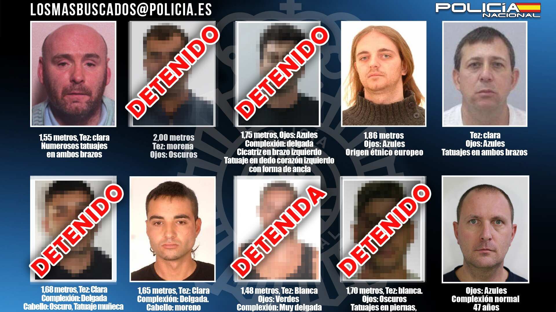 Con este arresto ya son cinco los fugitivos detenidos de la lista de 'Los 10 más buscados' que comenzó a difundirse en mayo de 2022 para solicitar la colaboración ciudadana a través del correo electrónico losmasbuscados@policia.es.