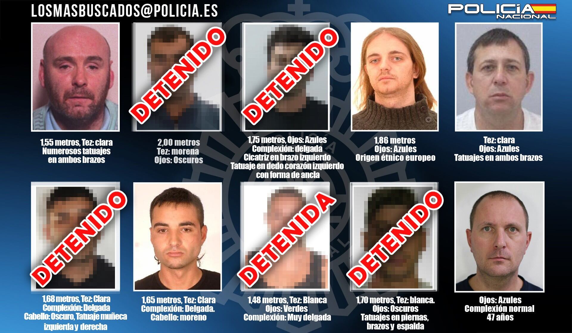 Con este arresto ya son cinco los fugitivos detenidos de la lista de 'Los 10 más buscados' que comenzó a difundirse en mayo de 2022 para solicitar la colaboración ciudadana a través del correo electrónico losmasbuscados@policia.es.