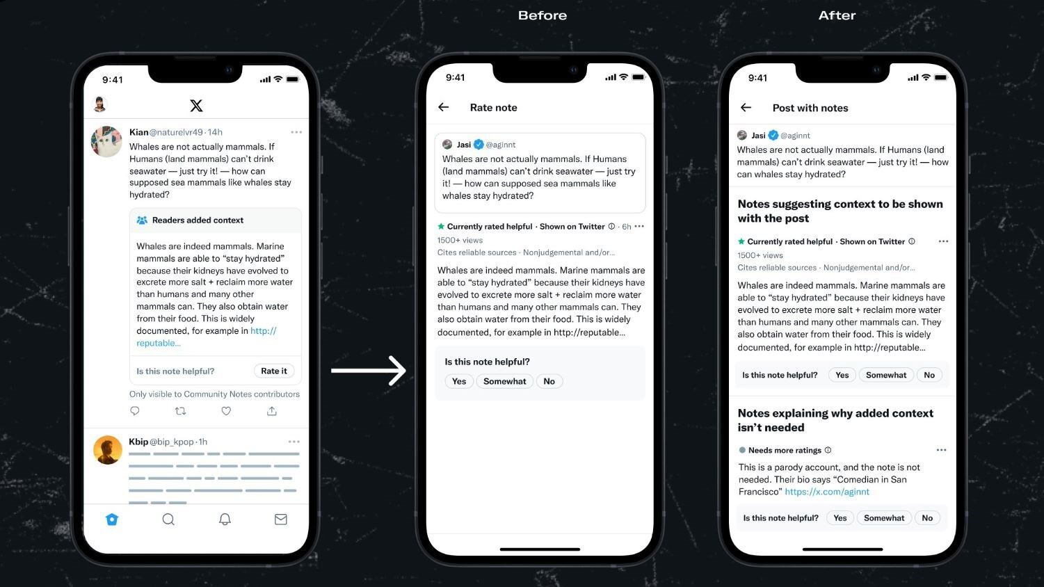 Ahora la plataforma ha anunciado que cuando los usuarios quieran calificar una de ellas, se les llevará a una página en la que se enumerarán todas las propuestas de notas, un lugar de ofrecer únicamente la nota que están visualizando y las opciones de respuesta ‘Sí’, ‘Algo’ o ‘No’ a la pregunta ‘¿Esta nota es útil?’.