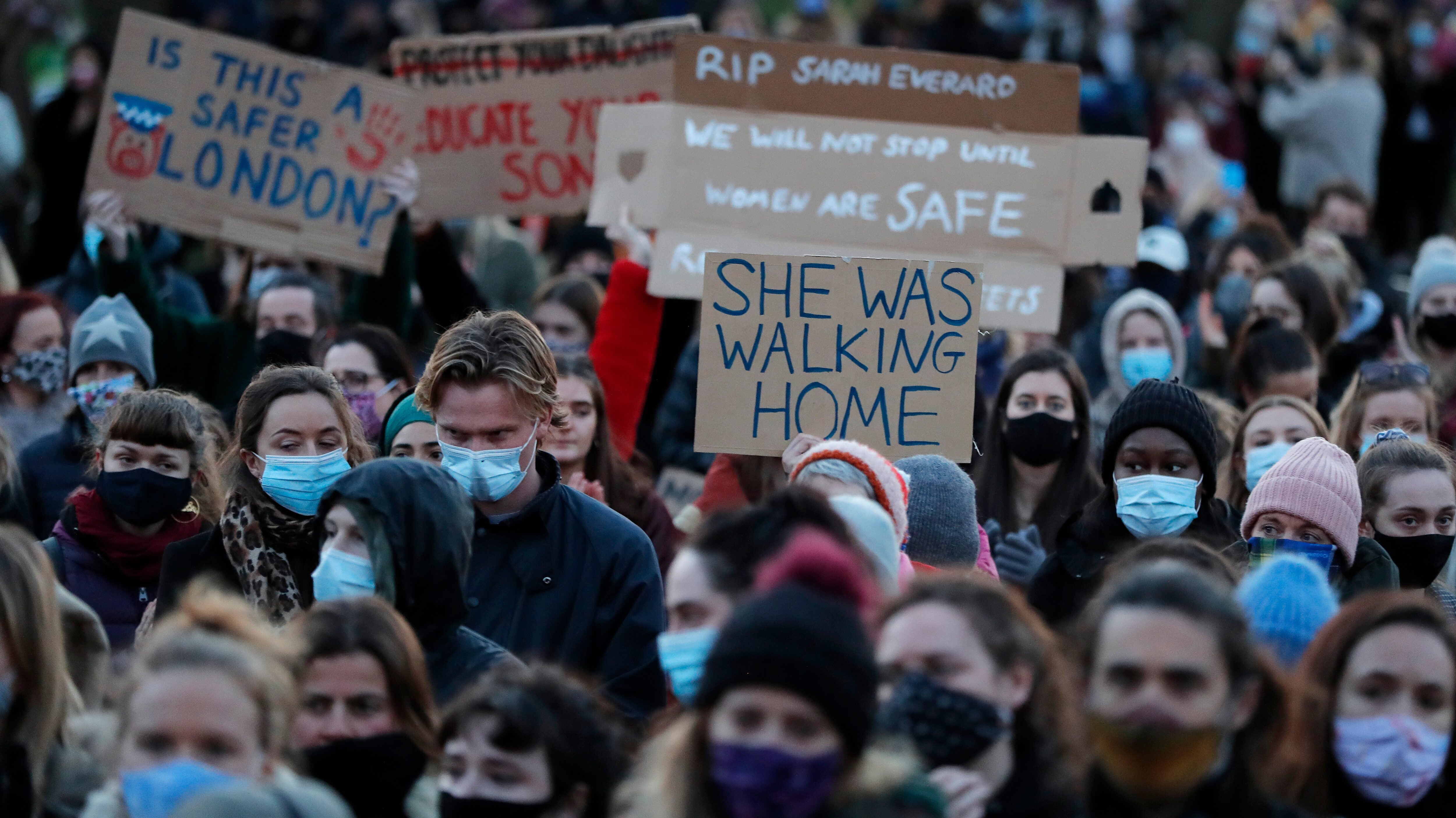 El encuentro se convocó después de que Sarah Everard, una mujer de Londres de 33 años, fuera secuestrada y asesinada por un agente fuera de servicio de la Policía Metropolitana cuando caminaba de vuelta a su casa.