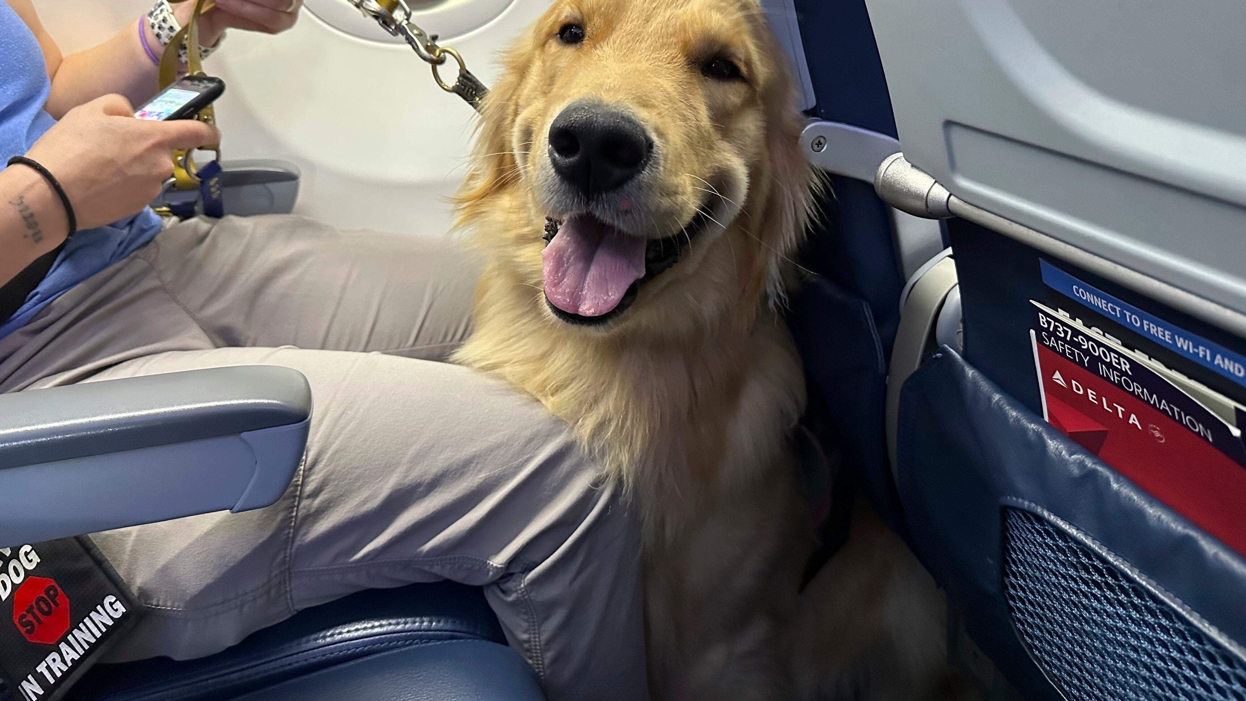 Los cinco cachorros, que incluían labradores y golden retriever, además de un papillón, pasearon por el aeropuerto, donde recibieron más de una mirada de los pasajeros. Los perros pasaron por una pasarela elevada hasta un avión, donde se acurrucaron a los pies de sus entrenadores, que se sentaron y dieron golosinas a los cachorros para que se quedaran quietos.