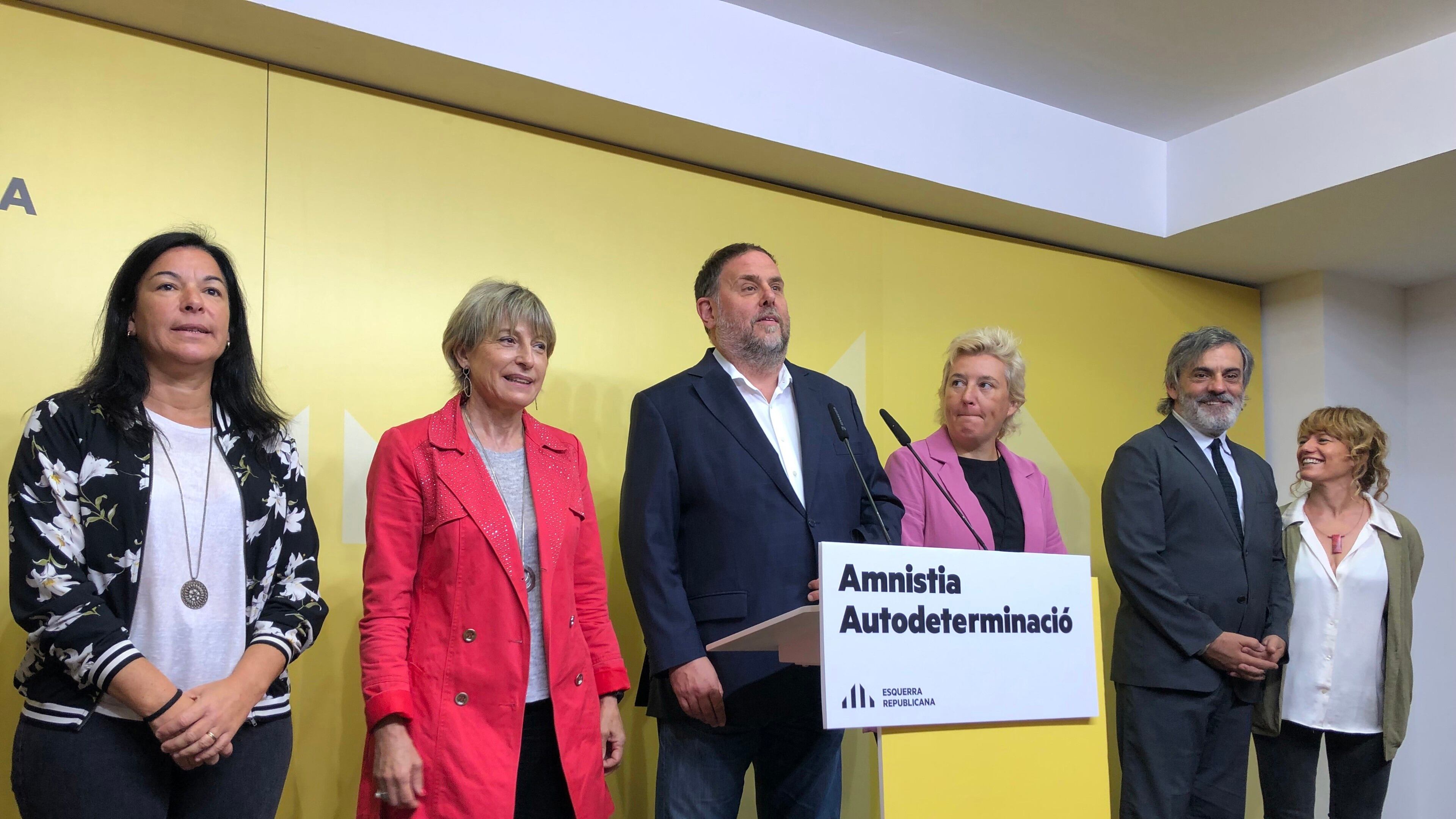 "Incluye poner fin a la represión por todas las vías legales necesarias, y es evidente que la amnistía es una vía legal y necesaria, y que se incluye en estas vías legales necesarias que el PSOE ya se ha comprometido a hacer", ha dicho en una comparecencia sin preguntas desde la sede de ERC.