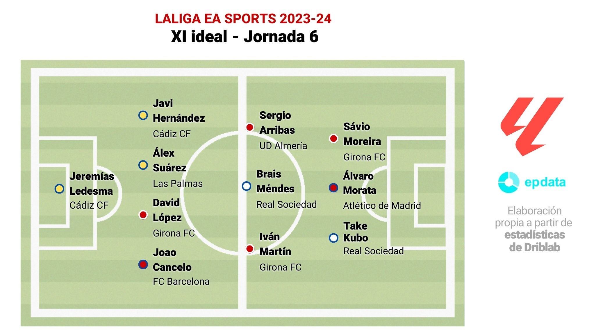 El once completo está compuesto por: Jeremías Ledesma (Cádiz CF); Javier Hernández (Cádiz CF), Álex Suárez (UD Las Palmas), David López (Girona FC), Joao Cancelo (FC Barcelona); Sergio Arribas (UD Almería), Brais Méndez (Real Sociedad), Iván Martín (Girona FC); Sávio Moreira (Girona FC), Álvaro Morata (Atlético de Madrid) y Take Kubo (Real Sociedad).
