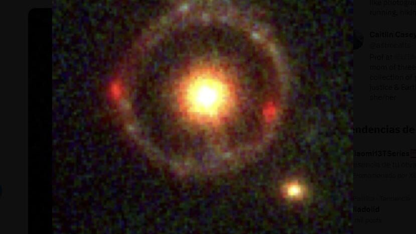 "La galaxia y su anillo fueron identificados en observaciones JWST NIRCam en el contexto del proyecto COSMOS-Web, un estudio público de área amplia que utiliza los filtros F115W, F150W, F277W y F444W", explicaron los investigadores en un artículo publicado en arXiv.