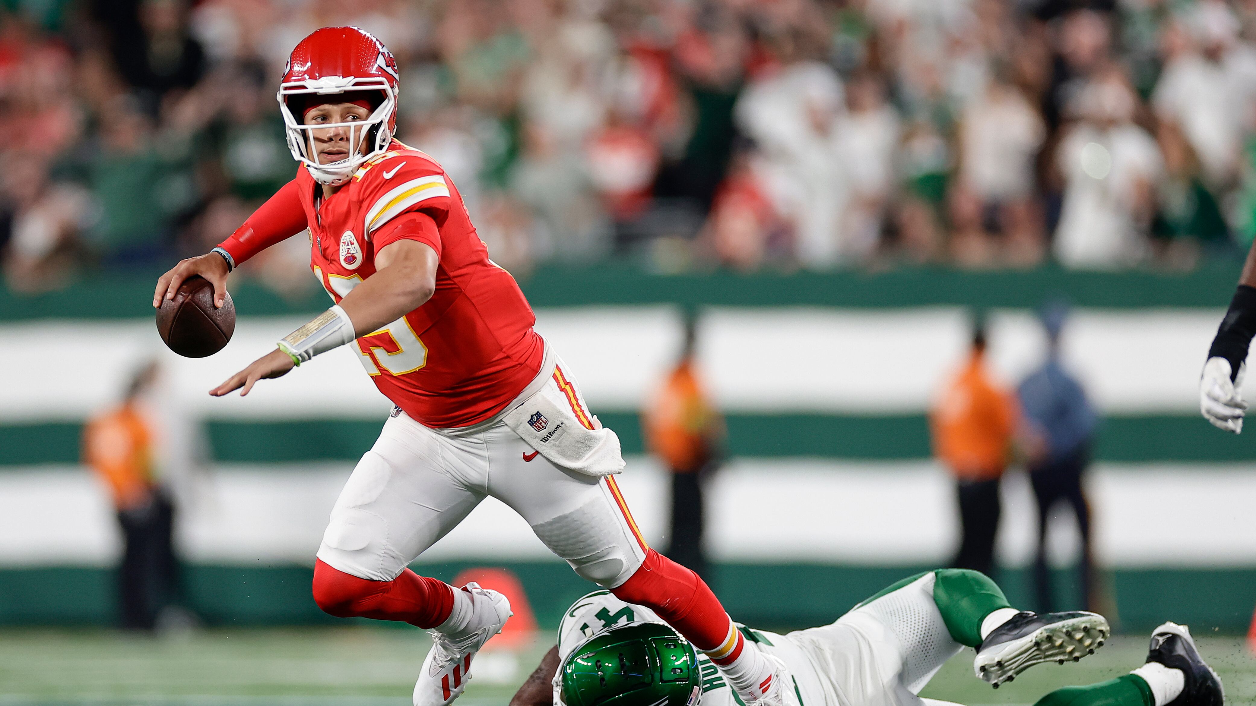 Mahomes, quien logró un acarreo de 24 yardas en tercera y 22 por avanzar para extender una serie ofensiva, corrió 11 yardas para otra tercera oportunidad, dejando el balón en la yarda dos de los Jets, sellando la victoria.