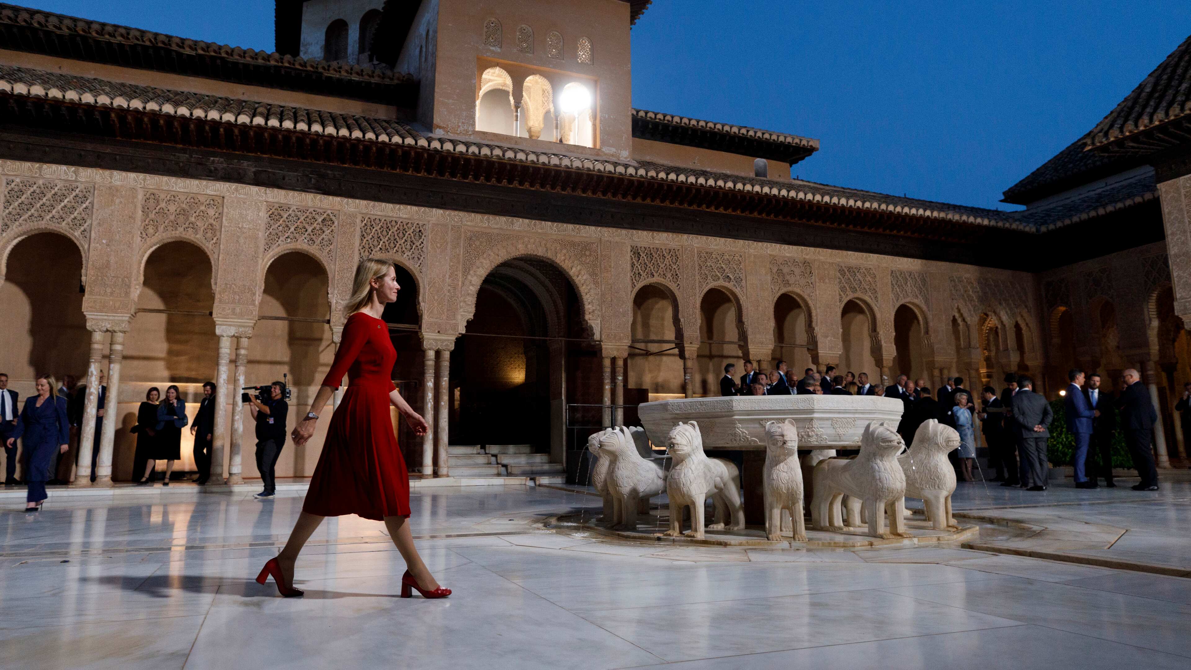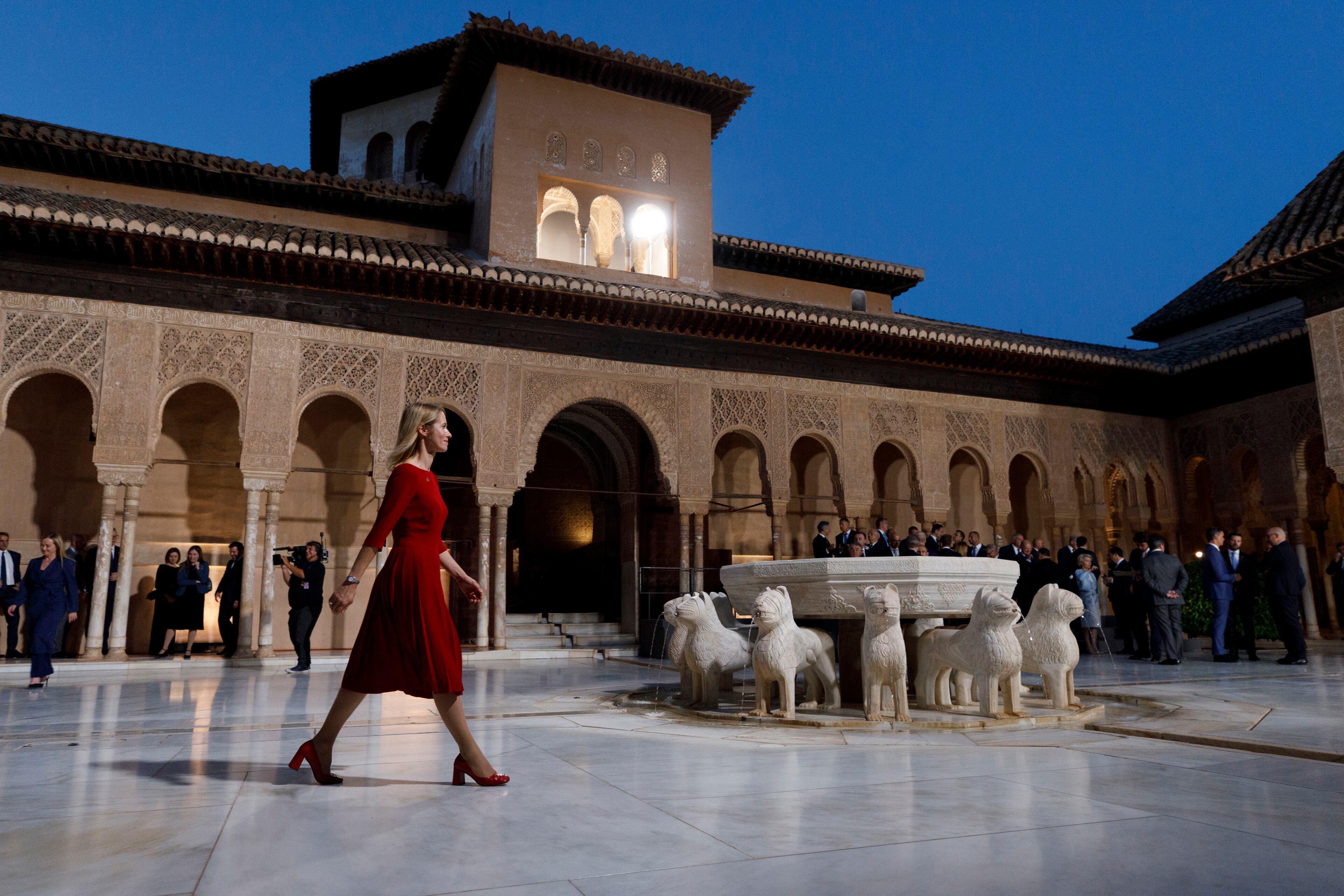 Todos ellos fueron saludados a la entrada del Patio de Arrayanes por Sánchez y su mujer, Begoña Gómez, quienes intercambiaron saludos y comentarios con los invitados sobre el enclave. Muchos de los mandatarios y sus acompañantes mostraron gestos de asombro y admiración por la belleza del enclave.