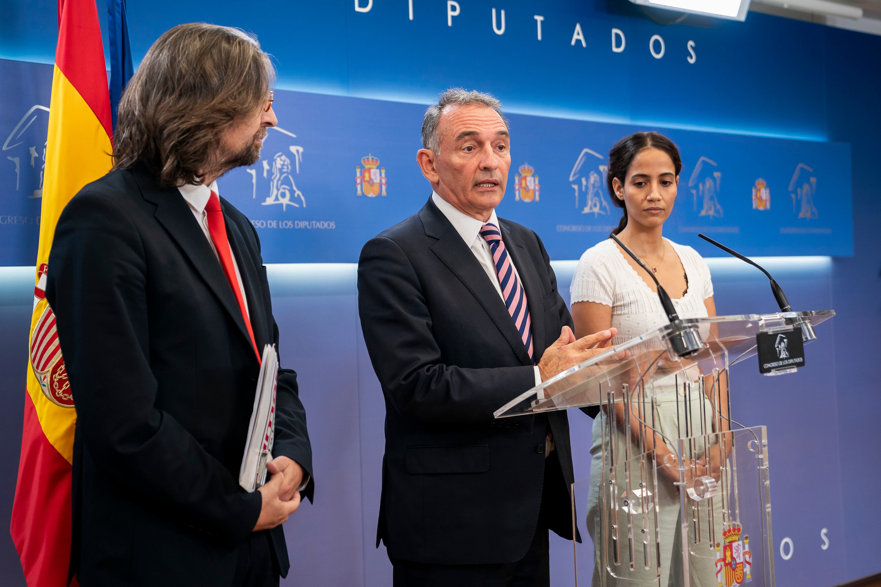 Así lo ha dado a conocer el portavoz de Izquierda Unida (IU) y diputado de Sumar por Córdoba, Enrique Santiago, junto a los parlamentarios Tesh Sidi y Francisco Sierra, en el marco de una rueda de prensa en la Cámara Baja. Se trata de la segunda Proposición de Ley que presenta Sumar en esta legislatura, tras la que hacía referencia a la garantía de la libertad de expresión. Con esta norma se modifican la Ley de Protección del Derecho al Honor, la Ley Electoral, la Ley de Comunicación Audiovisual, la Ley de Competencia Desleal, el Código Penal y la Ley de Enjuiciamiento Civil.